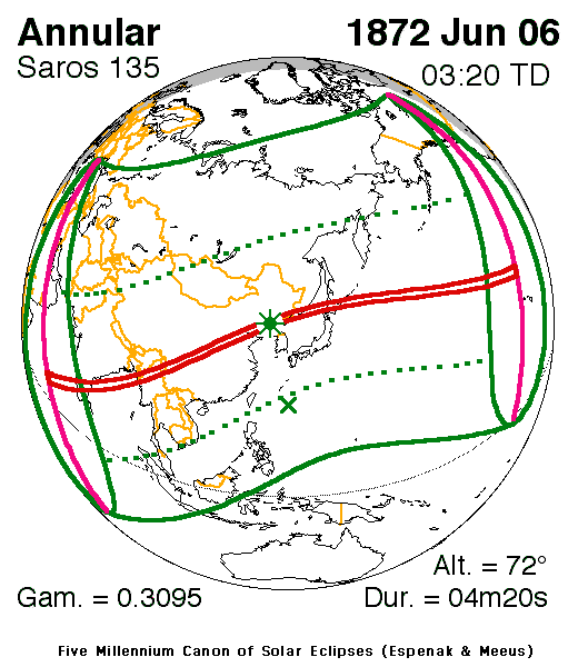 이 일식은 메토닉 주기에 따라 약 19년마다 반복되며, 트리토스 주기와 이넥스 주기의 일부이기도 하다.