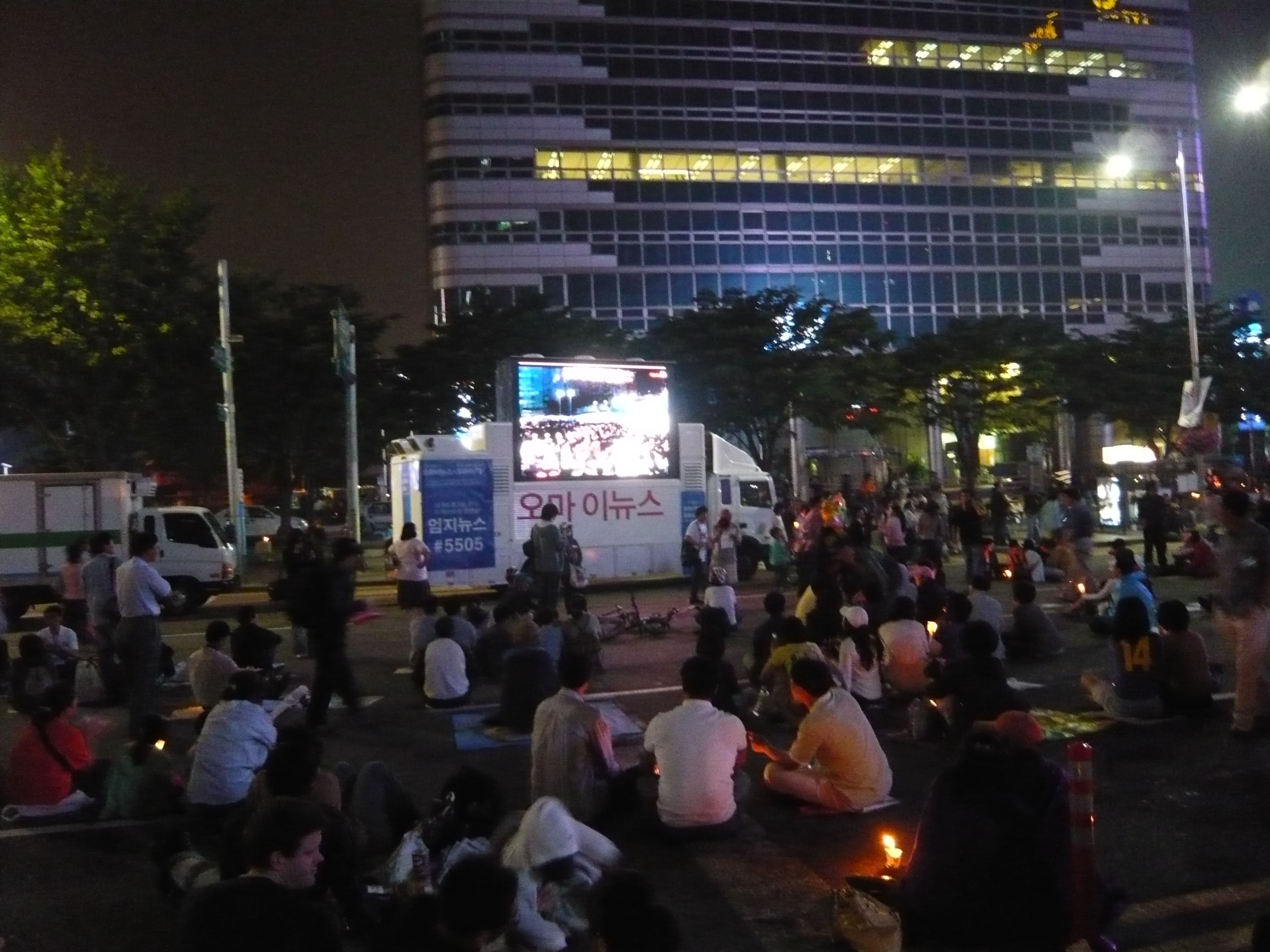 2008년 대한민국 촛불 시위는 2008년 5월 2일, 인터넷 카페 ‘이명박 탄핵을 위한 범국민운동본부’의 주최로 서울 청계광장에서 첫 촛불 집회가 열리면서 시작되었다.[80] 이 집회는 이명박 정부가 미국산 쇠고기 수입을 재개하기로 한 결정에 대한 반대에서 시작되었지만, 점차 이명박 정부에 대한 전반적인 비판으로 확대되었다.[75]