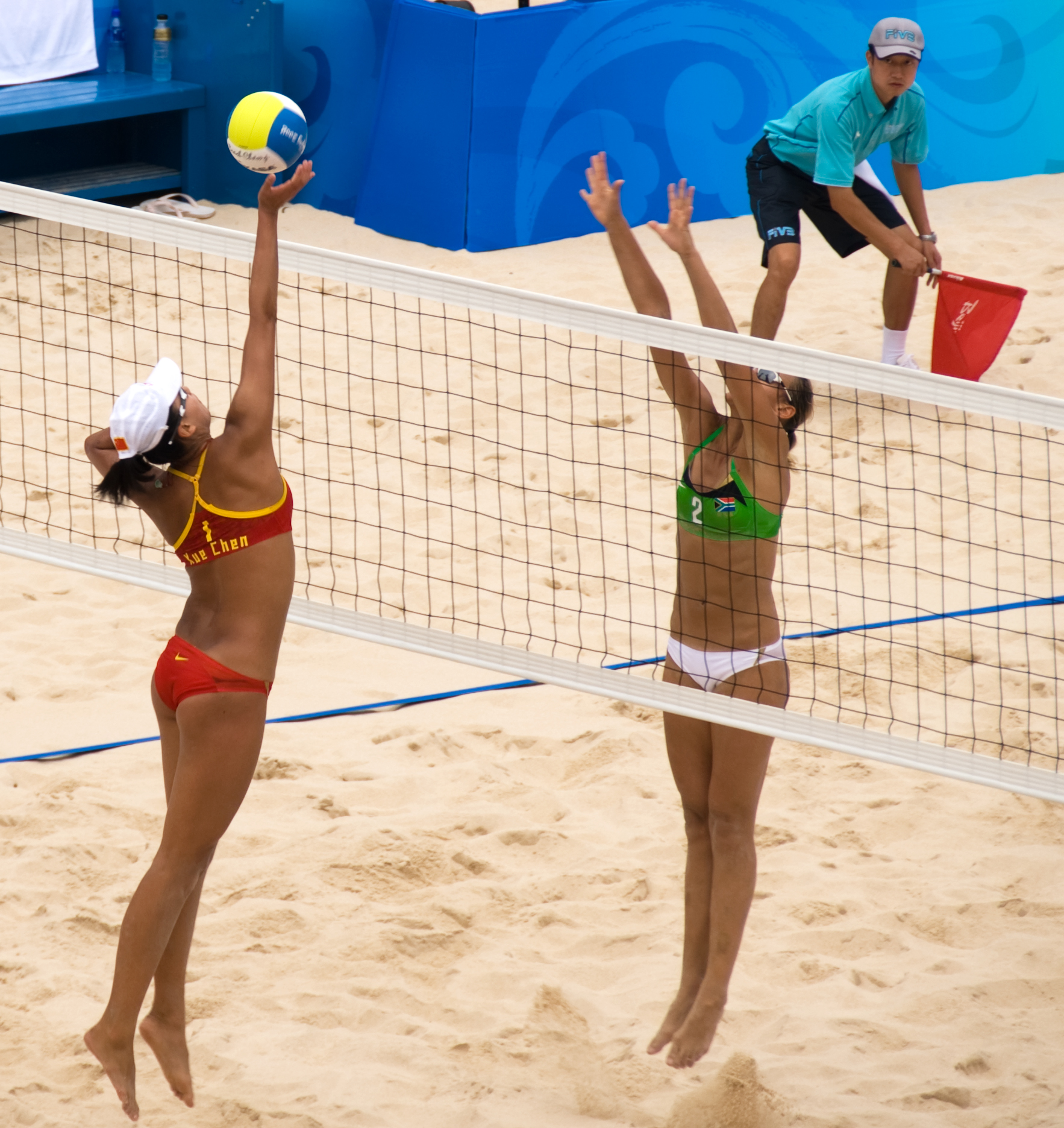 비치 발리볼 – 여자 종목에는 24개 팀이 참가했다. 준결승에서 A조 1위인 왕지에 & 톈자 조가 D조 1위인 쉐첸 & 장시 조를 2-1로 이겼다. F조 1위인 안투네스 & 리베이루 조는 B조 1위인 월시 & 메이-트레이너 조에게 0-2로 졌다. 결승에서는 왕지에 & 톈자 조가 월시 & 메이-트레이너 조에게 0-2로 패했다. 3,4위전에서는 쉐첸 & 장시 조가 안투네스 & 리베이루 조를 2-0으로 이겼다.