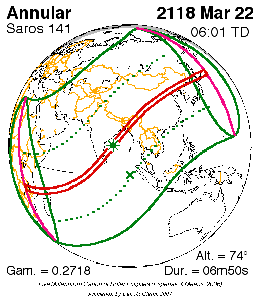 남아시아 이후 반영부는 방글라데시, 미얀마, 중국 남쪽 끝을 통과하여 지구를 벗어났다.[8]