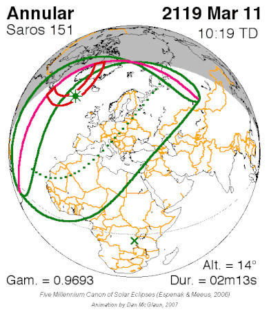 최대 일식 | 7시 07분 39초 |
