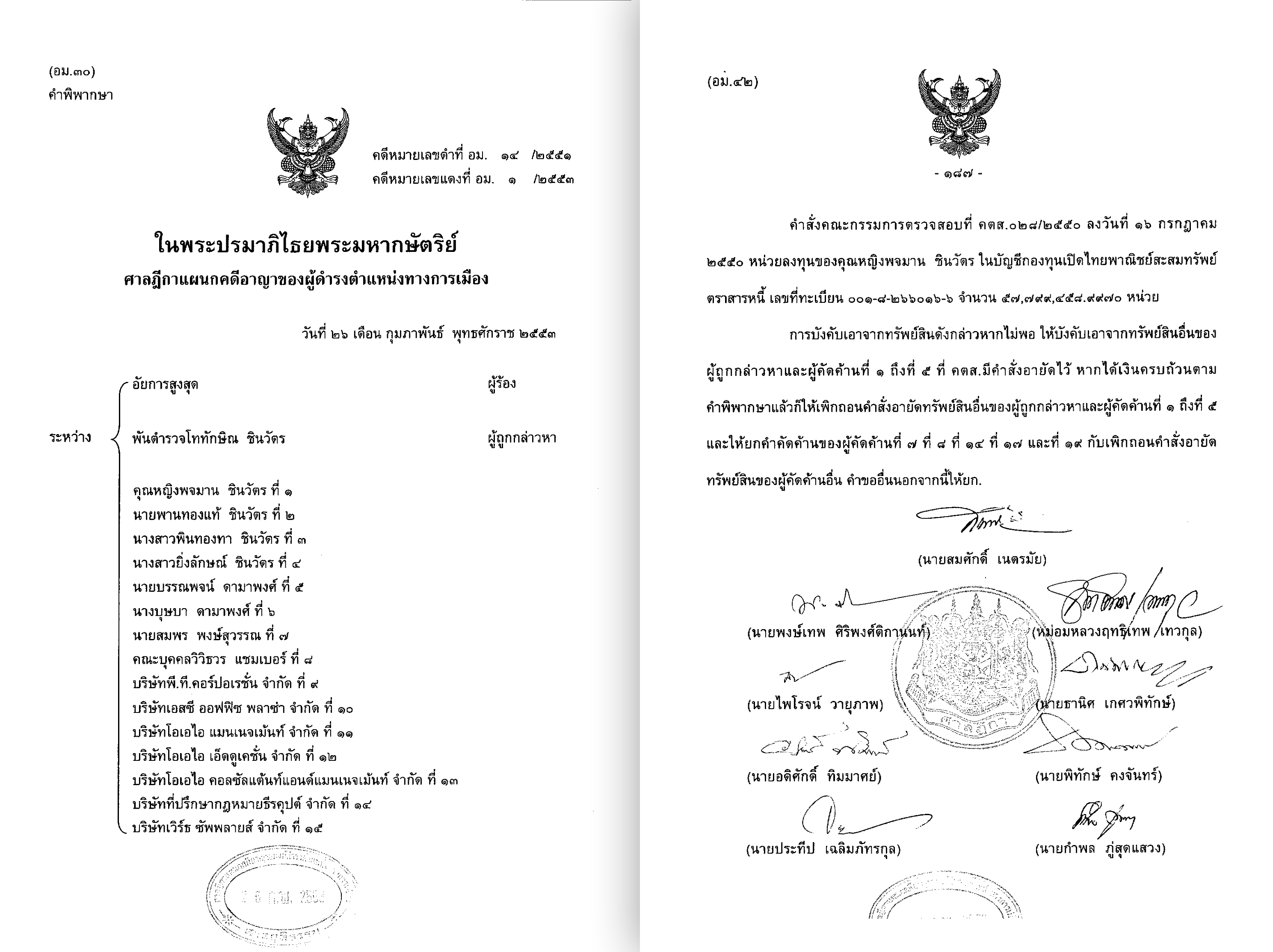 이러한 상황에서 탁신 전 총리의 재산 몰수 시도와 더불어, 2010년 2월 대법원의 판결은 탁신 지지 세력의 불만을 더욱 고조시켰다. 결국 탁신 지지 세력은 2010년 3월부터 대규모 시위를 벌이게 되었다.