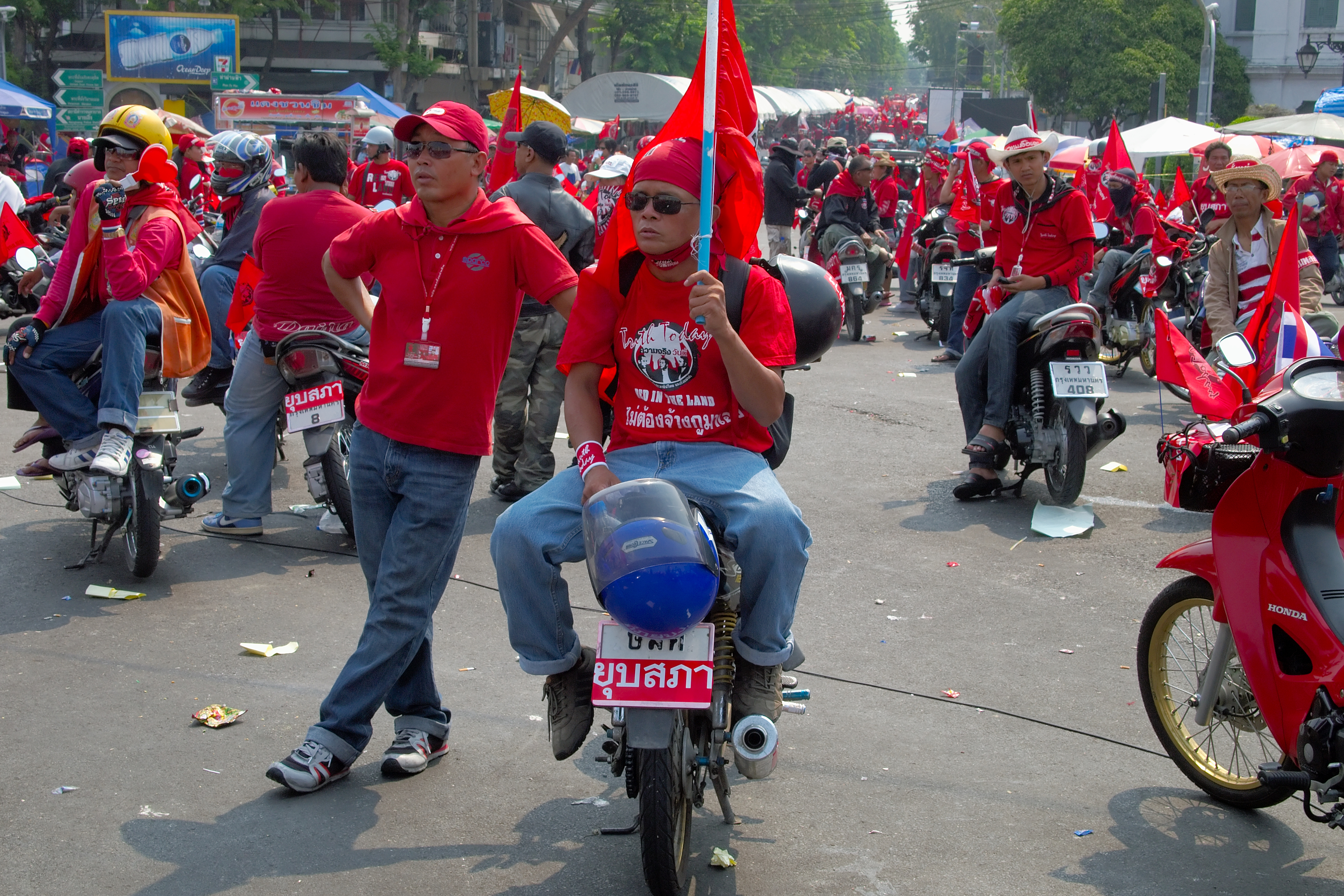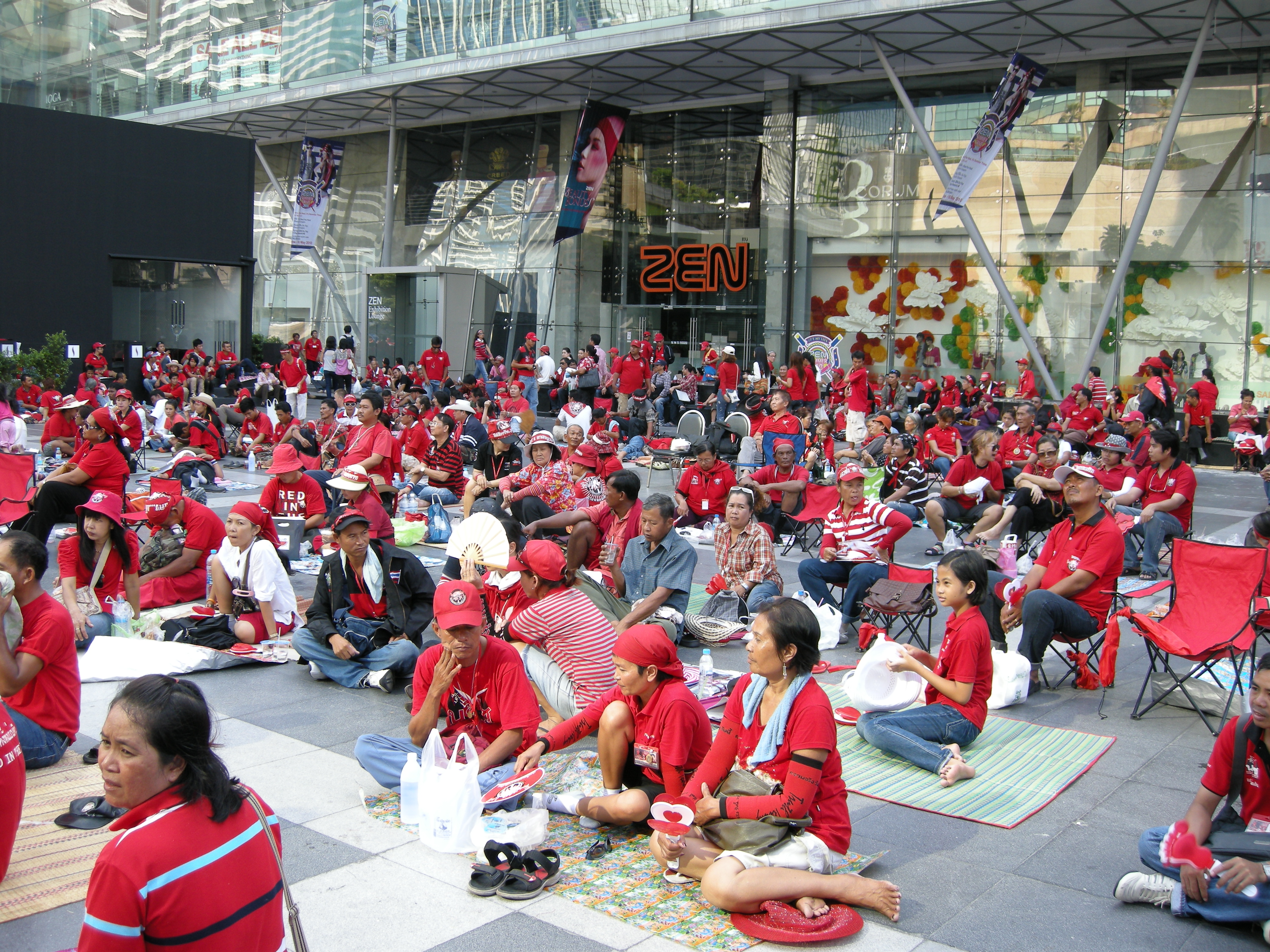 결국, '붉은 셔츠'로 불리는 탁신 지지 세력들이 결집하여 평화적 시위를 시작했다. 이들은 아피싯 수상의 해외 망명, 의회 해산, 조기 총선 실시를 요구하며 방콕의 주요 상권을 점거하고 압박했다. 아피싯 총리는 조기 총선은 불가하며 연말 총선을 약속하고, 시위대가 해산하지 않으면 강경 진압할 것이라고 경고했다.