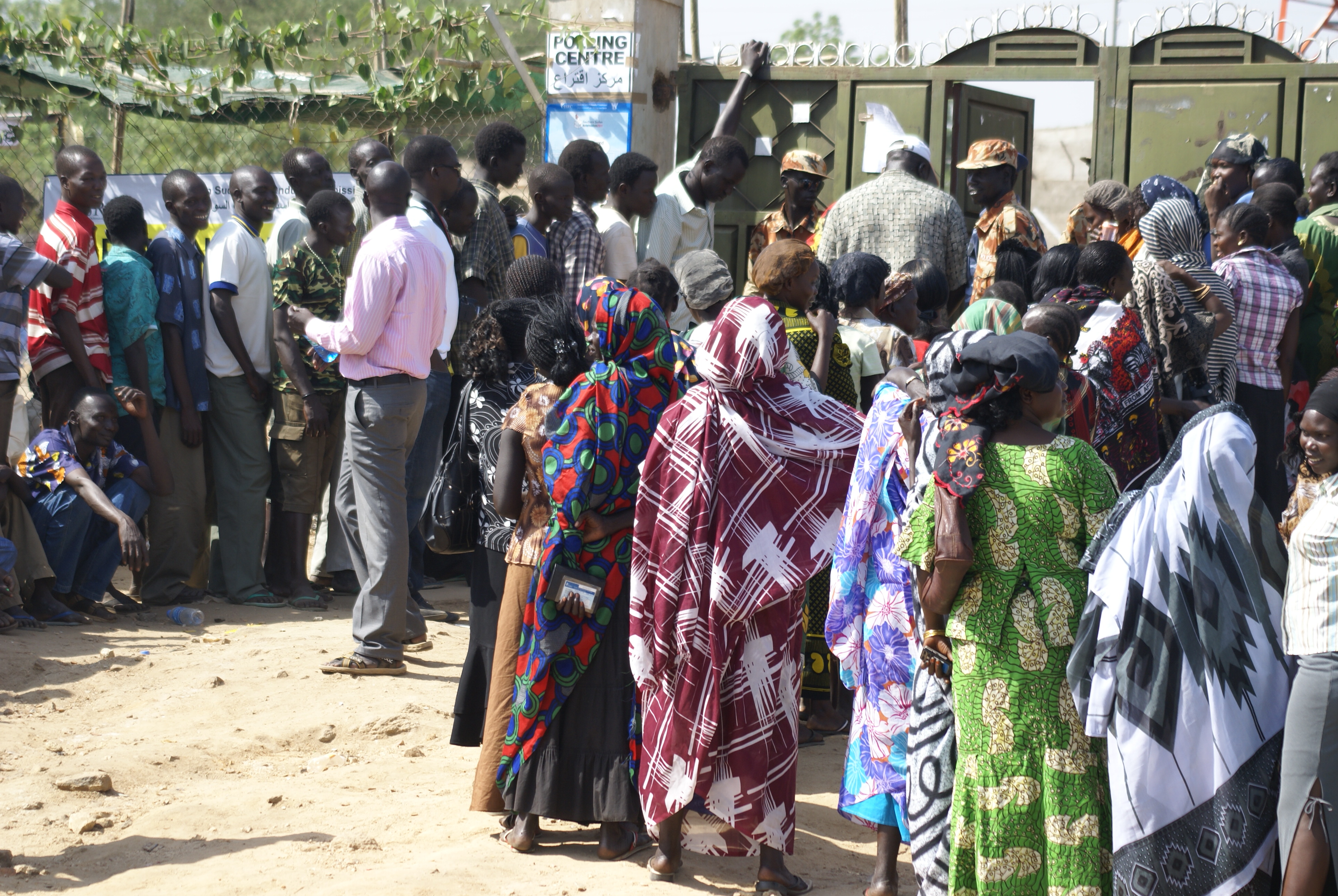 투표소에 줄을 선 유권자들. 2011년 1월 9일, 주바.
