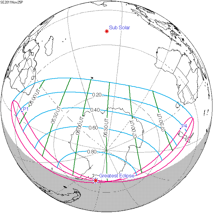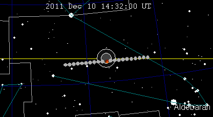 2011년 12월 10일에 일어난 개기 월식은 여러 지역에서 다양한 시간대에 관측되었다.월식 경과[7][8] | 오스트레일리아 | 인도 | 일본 | 북미 | 프랑스 | UTC | ||||