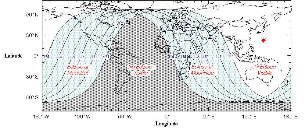 이 월식은 일본을 포함한 아시아 지역과 오스트레일리아 등 주로 태평양 주변 지역에서 관측되었다.[7] 유럽 지역과 북아메리카 지역에서도 부분 월식은 관측되었지만, 개기 월식은 관측되지 않았다.[7] 남아메리카 지역과 아프리카 지역 서부에서는 월식 시간이 이른 아침이었기 때문에, 관측할 수 없었다.[7]