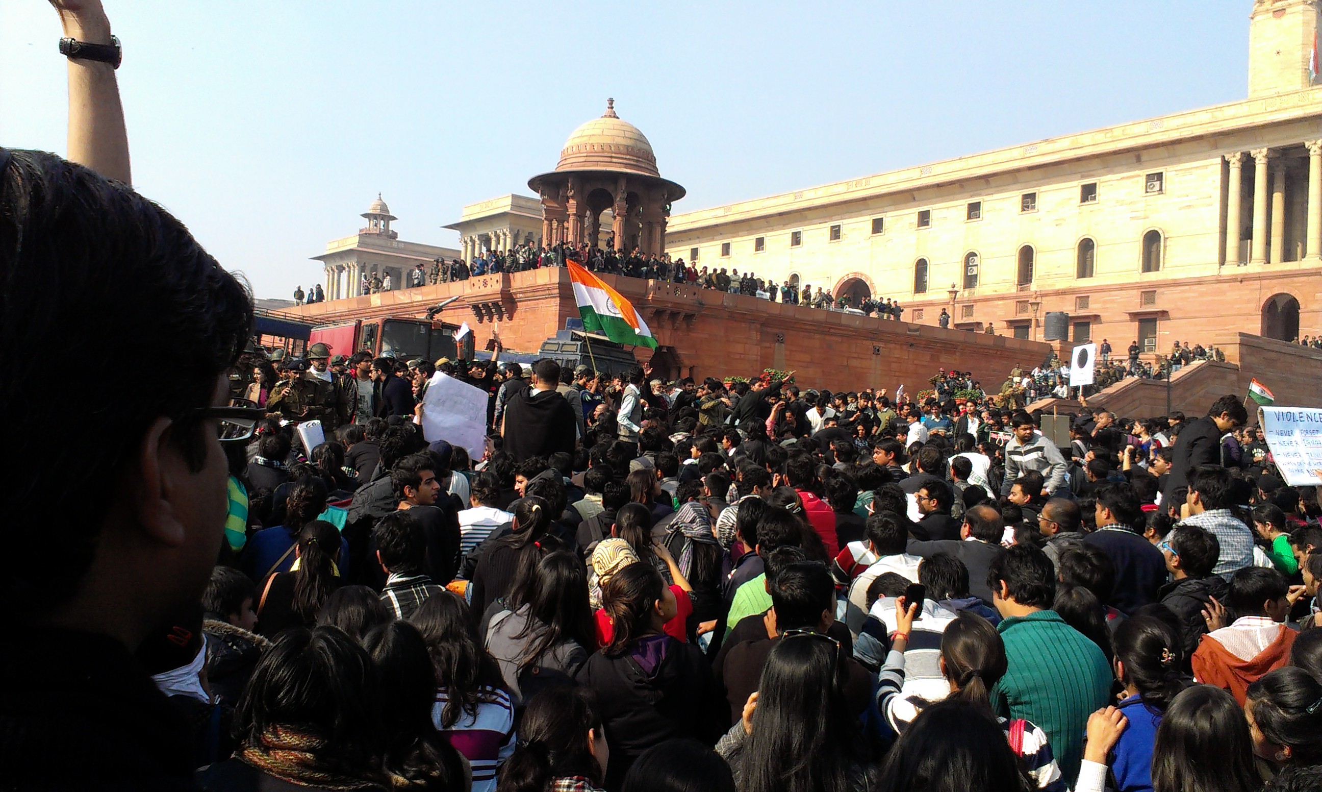 사건 직후 인도 전역에서 성범죄 처벌 강화와 여성 안전 대책 마련을 요구하는 대규모 시위가 발생했다.[157] 2012년 12월 21일, 뉴델리 인도 게이트와 라시나 힐에서 시위가 열렸으며, 수천 명의 시위대가 경찰 및 신속대응군과 충돌했다.[157] 시위대는 진압봉 공격,[158] 물대포, 최루탄을 맞고 체포되었다.[159]