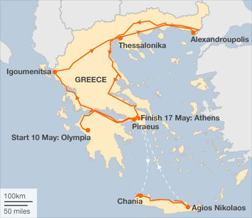 5월 10일올림피아, 피르고스, 아말리아다, 가스투니, 레차이나, 코린토스, 피레아스