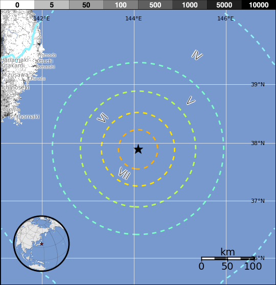 진앙 | 산리쿠 해역 (오시카 반도 동쪽 210km 부근) |