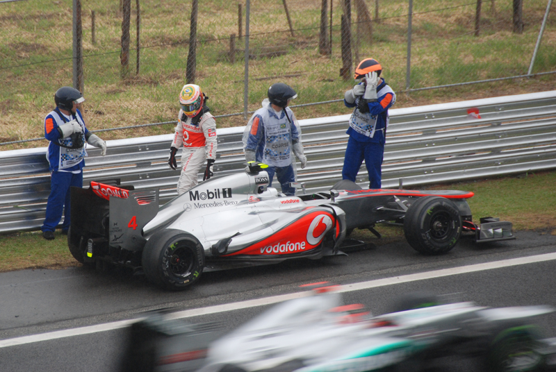 비가 다시 거세지면서 페텔은 인터미디에이트 타이어로 교체하기 위해 피트 스탑을 했지만, 라디오 고장으로 팀이 준비되지 않아 시간이 지연되었다. 마사는 피트 스탑 시간을 잘 맞춰 알론소가 2위로 올라서도록 도왔다. 페텔은 미하엘 슈마허에게 6위를 양보했고, 이는 알론소가 2위로 경기를 마쳤음에도 불구하고 페텔이 타이틀을 방어하기에 충분한 순위였다.[19]