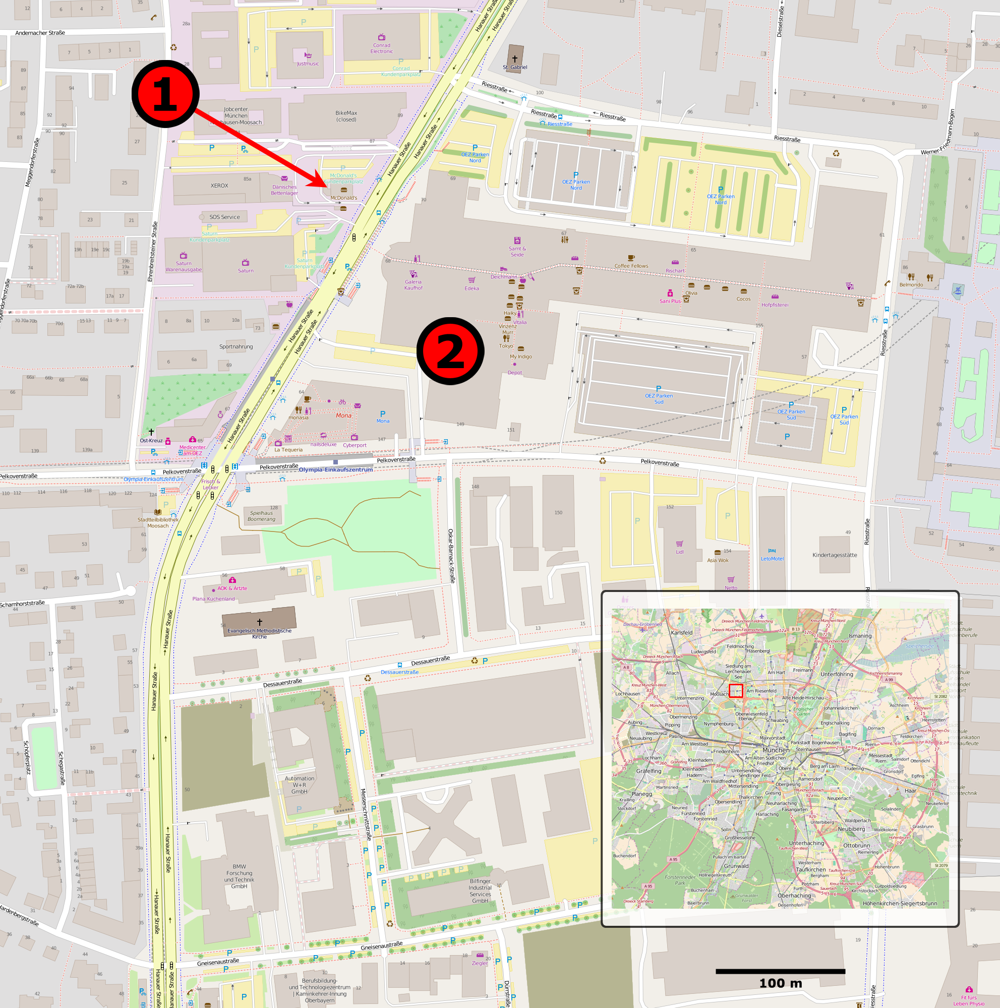 사건 발생 직후, 카를스플라츠(슈타후스)에서 여러 건의 총격 사건이 발생했다는 보고에 따라 해당 지역을 피하라는 긴급 경고가 발령되었다. 뮌헨 경찰은 카를스플라츠에서 공격이 있었다는 정보를 받았지만, 현장에 도착한 후 해당 정보가 사실이 아니라고 발표했다.[23][24] 운전자들에게는 승객을 태우지 말라는 권고가 내려졌다. 뮌헨 시민들은 경찰의 경고에 따라 집에 머물고, 군중과 공공 광장을 피해야 했다.[25]
