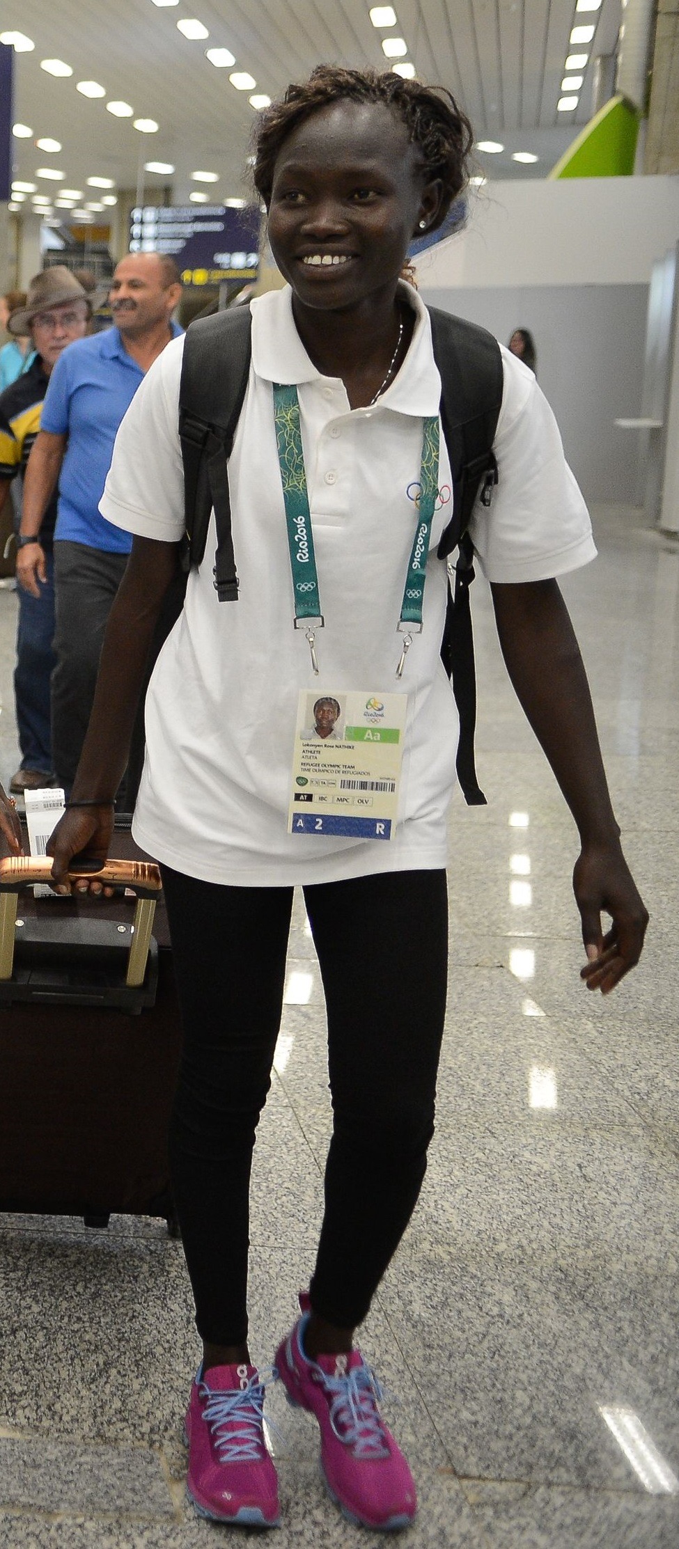 로즈 로코니엔은 남수단 출신으로, 800m 경기에 출전하여 2분 16.64초로 7위를 기록했다.[23] 안젤리나 로할리트는 남수단 출신으로 여자 1500m 경기에 출전하여 4분 47.38초로 14위를 기록하여 탈락했다.[25] 폴로 아모툰 로코로는 남수단 출신으로 남자 1500m 경기에 출전하여 4분 3.96초로 11위를 기록, 탈락했다.[27][28]
