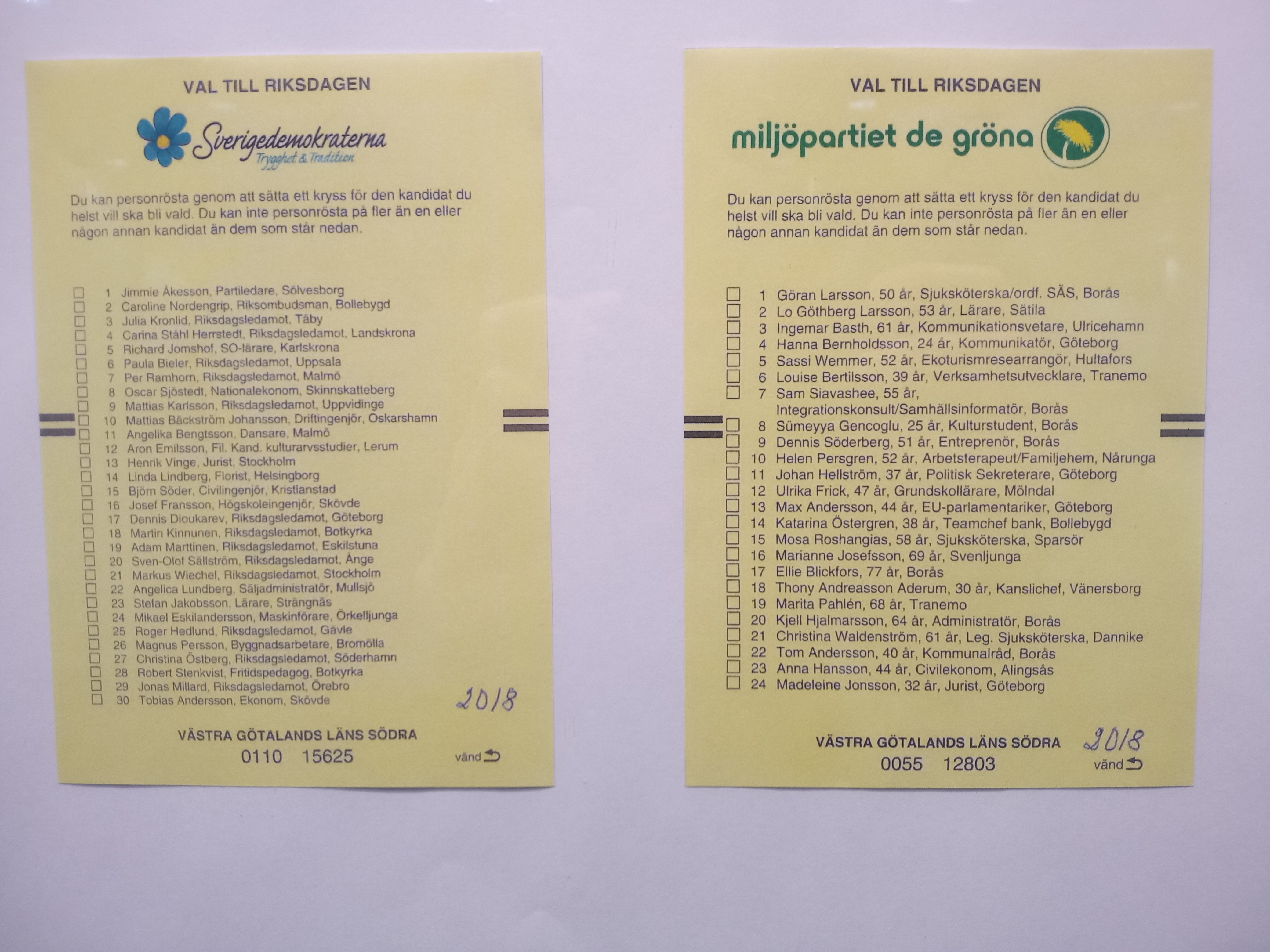 [36] 웹사이트 Ballot papers https://www.val.se/s[...] Valmyndigheten 2018-08-17