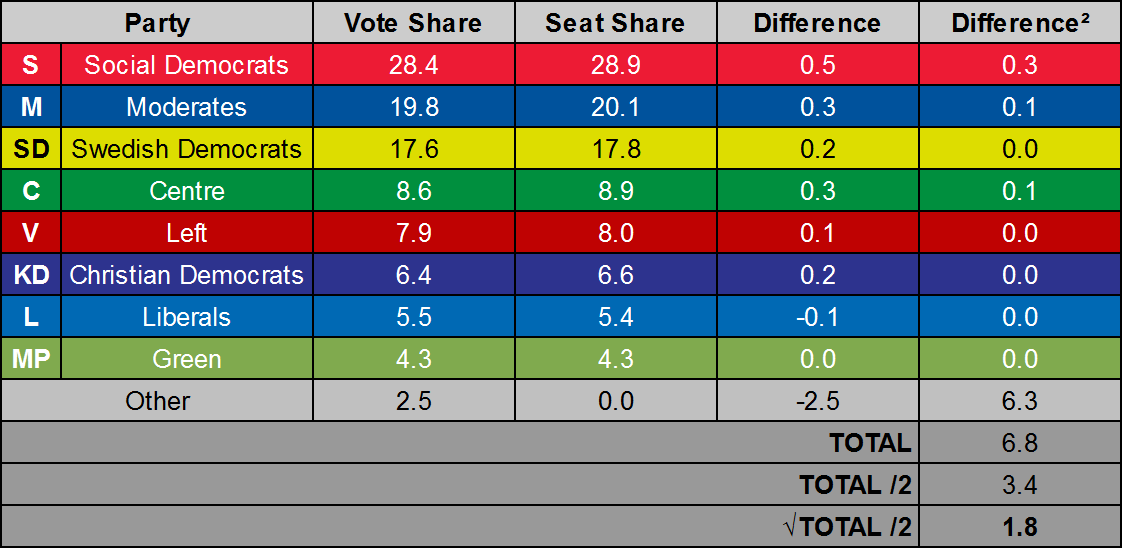 선거의 불비례성은 갤러거 지수(Gallagher index)에 따르면 1.8이었다.