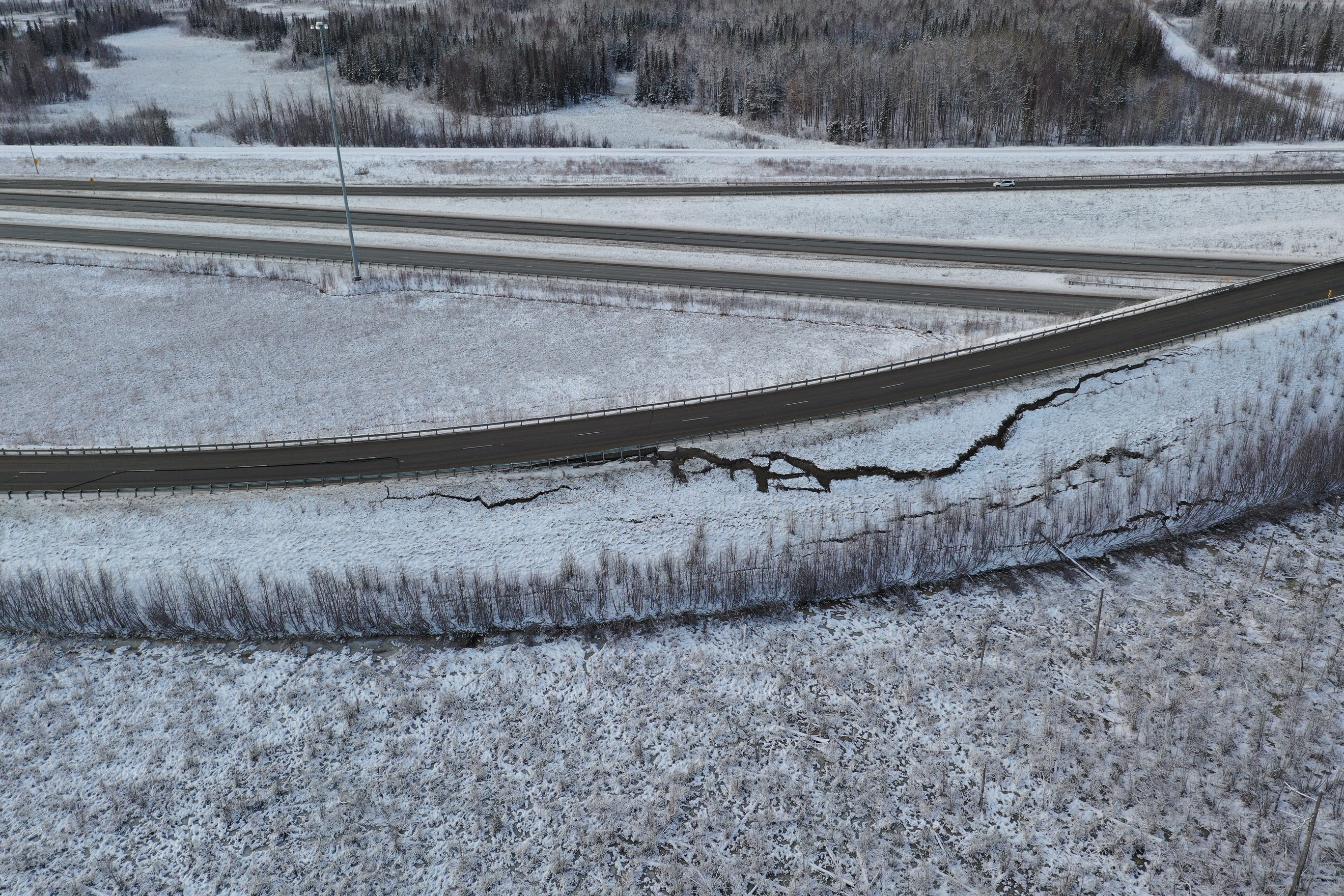 알래스카 교통부 및 공공 시설부는 교량을 신속하게 점검하고 도로 수리를 시작했다. 겨울에는 일반적으로 포장 공사를 하지 않음에도 불구하고, 지역 아스팔트 공장이 재가동되었고 며칠 안에 심각하게 파손된 여러 도로를 재개통하기에 충분한 수리가 이루어졌다.[34]
