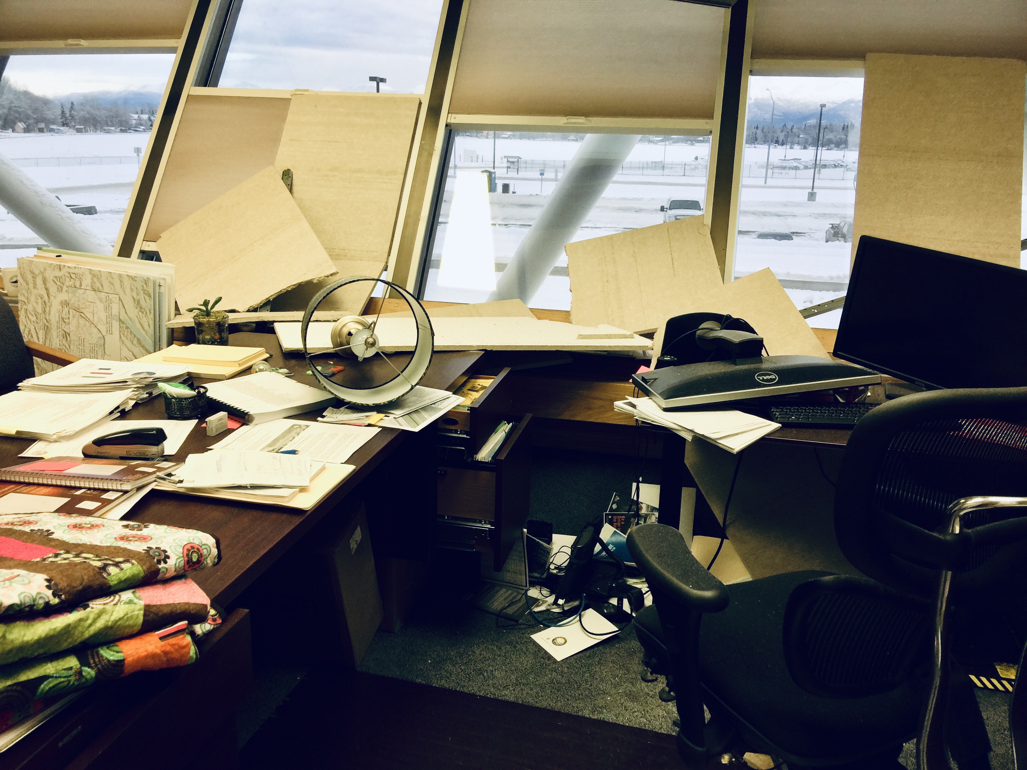 지진으로 엉망이 된 앵커리지의 사무실