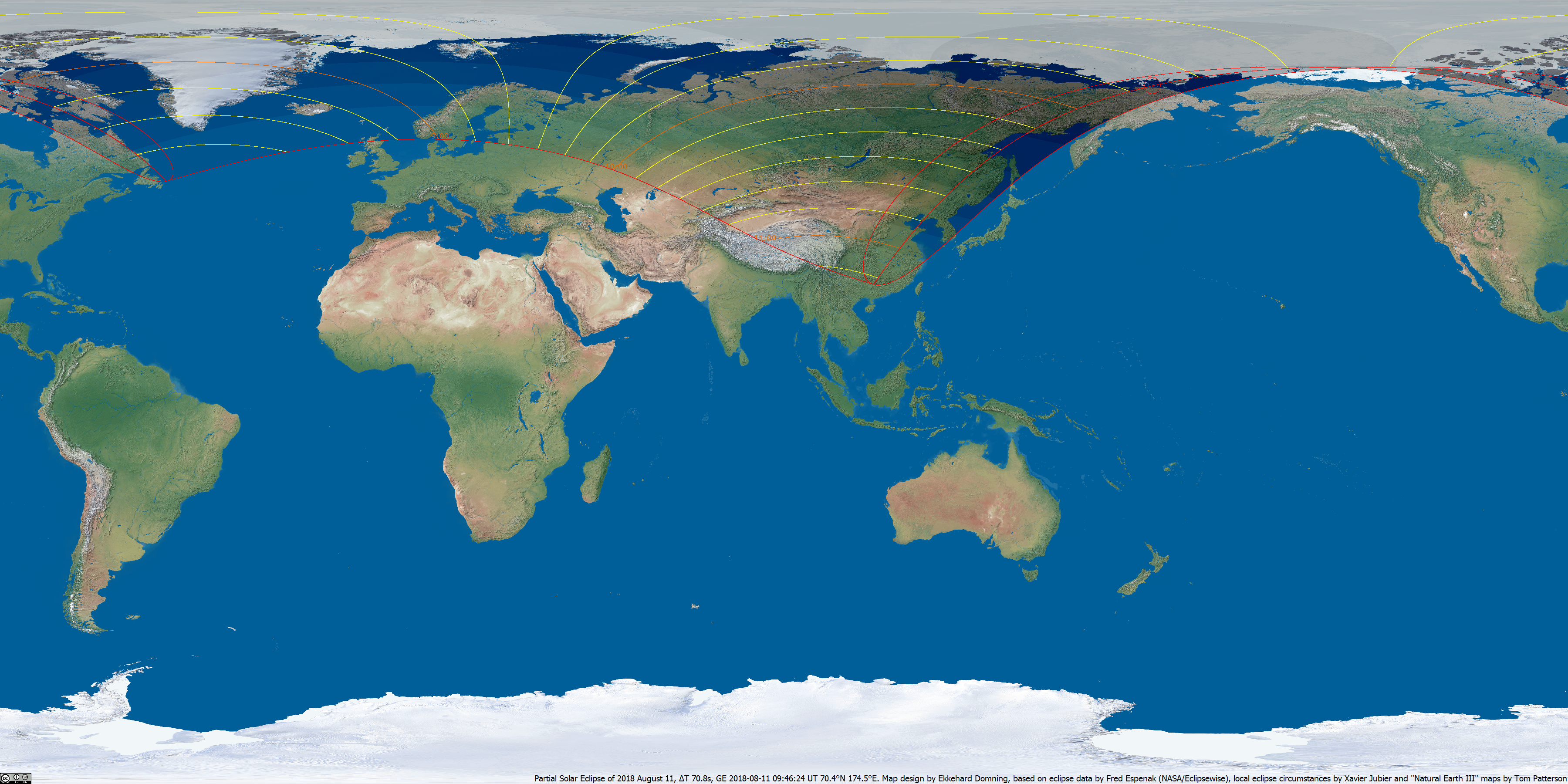 부분 일식의 최대 위상은 동시베리아해 Wrangel 섬 근처에서 기록되었다.
