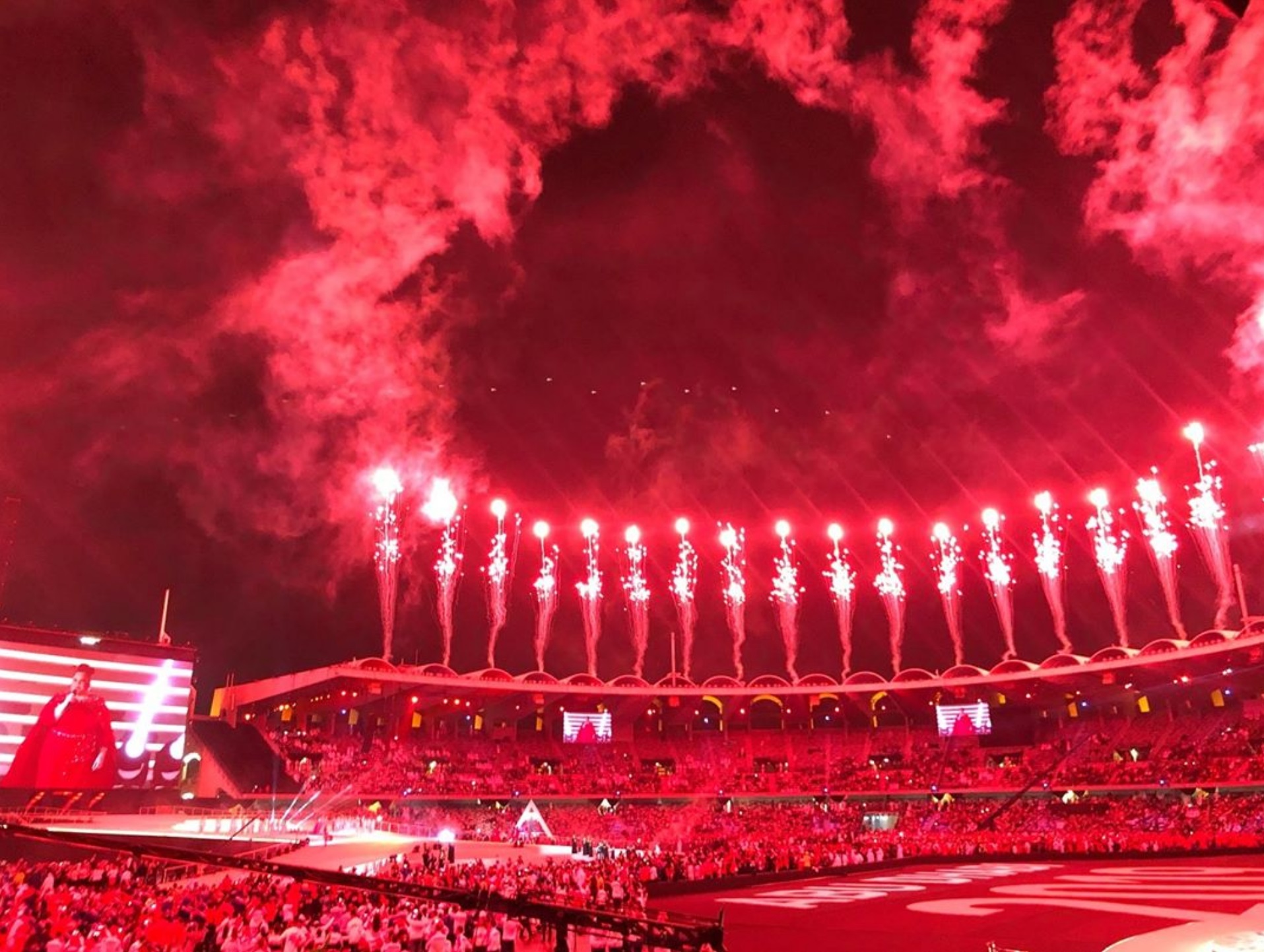 개막식은 자예드 스포츠 시티 스타디움에서 열렸으며, 이곳에서는 2017년 FIFA 클럽 월드컵, 2018년 FIFA 클럽 월드컵, 2019년 AFC 아시안컵 결승전이 개최되었다. 개막식에는 에이브릴 라빈, 후세인 알 자스미, 아살라 나스리, 타메르 호스니, 폴 오켄폴드, 조수미, 나우 유나이티드, 루이스 폰시가 출연했다.