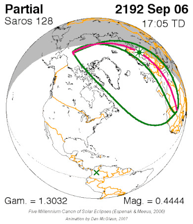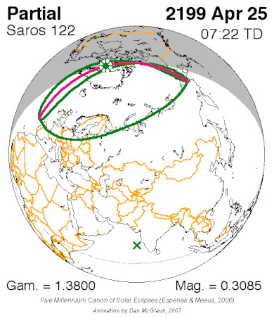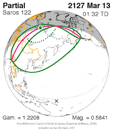 부분 일식의 최대 위상(71%)은 사하 공화국(러시아)에서 기록되었다.