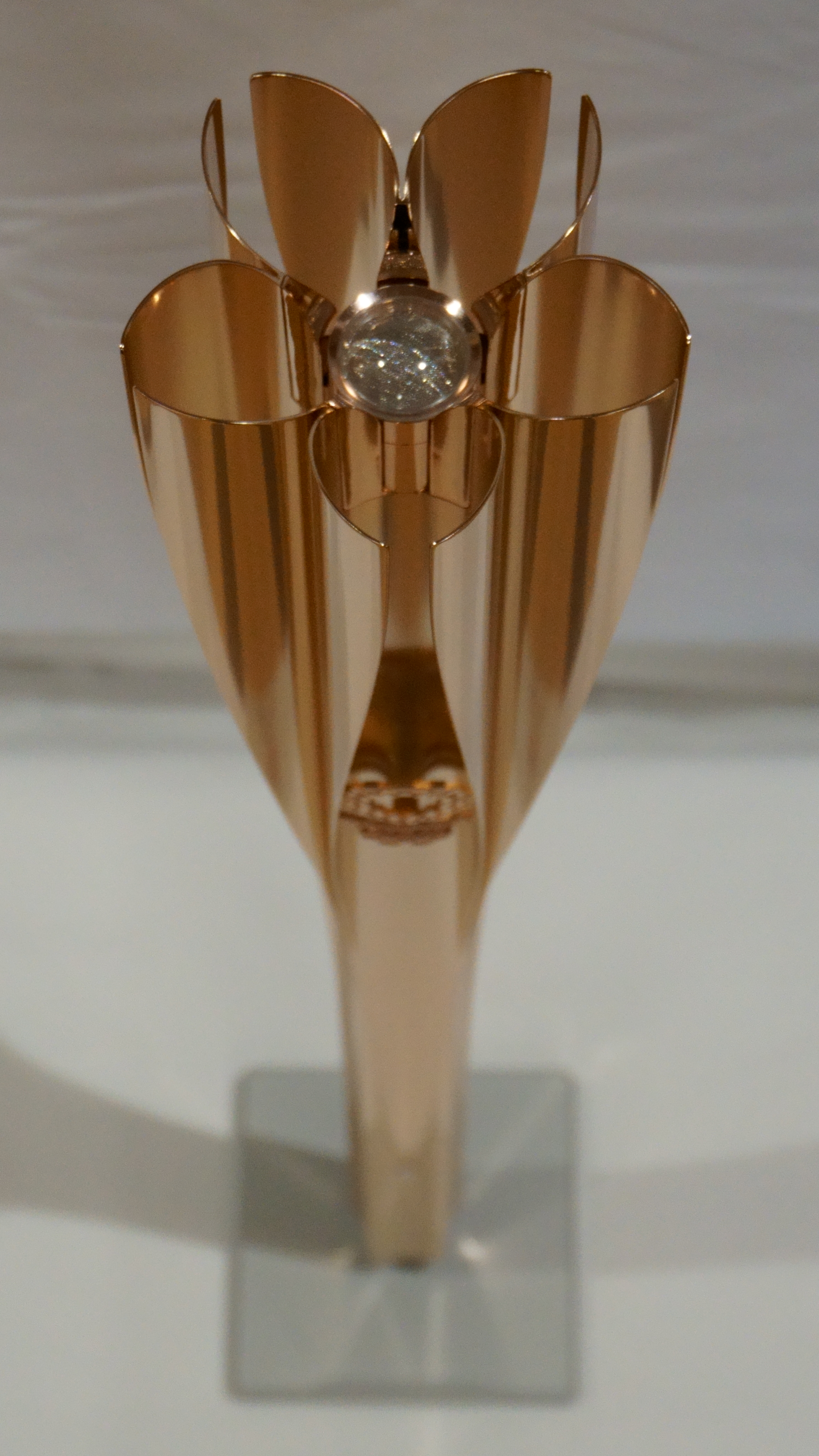 요시오카 토쿠진이 디자인한 벚꽃 모양의 성화 릴레이 토치 및 성화 접시는 2011년 도호쿠 지방 태평양 해역 지진 피해 지역의 가설 주택에서 사용되던 알루미늄을 재활용하여 제작되었다.