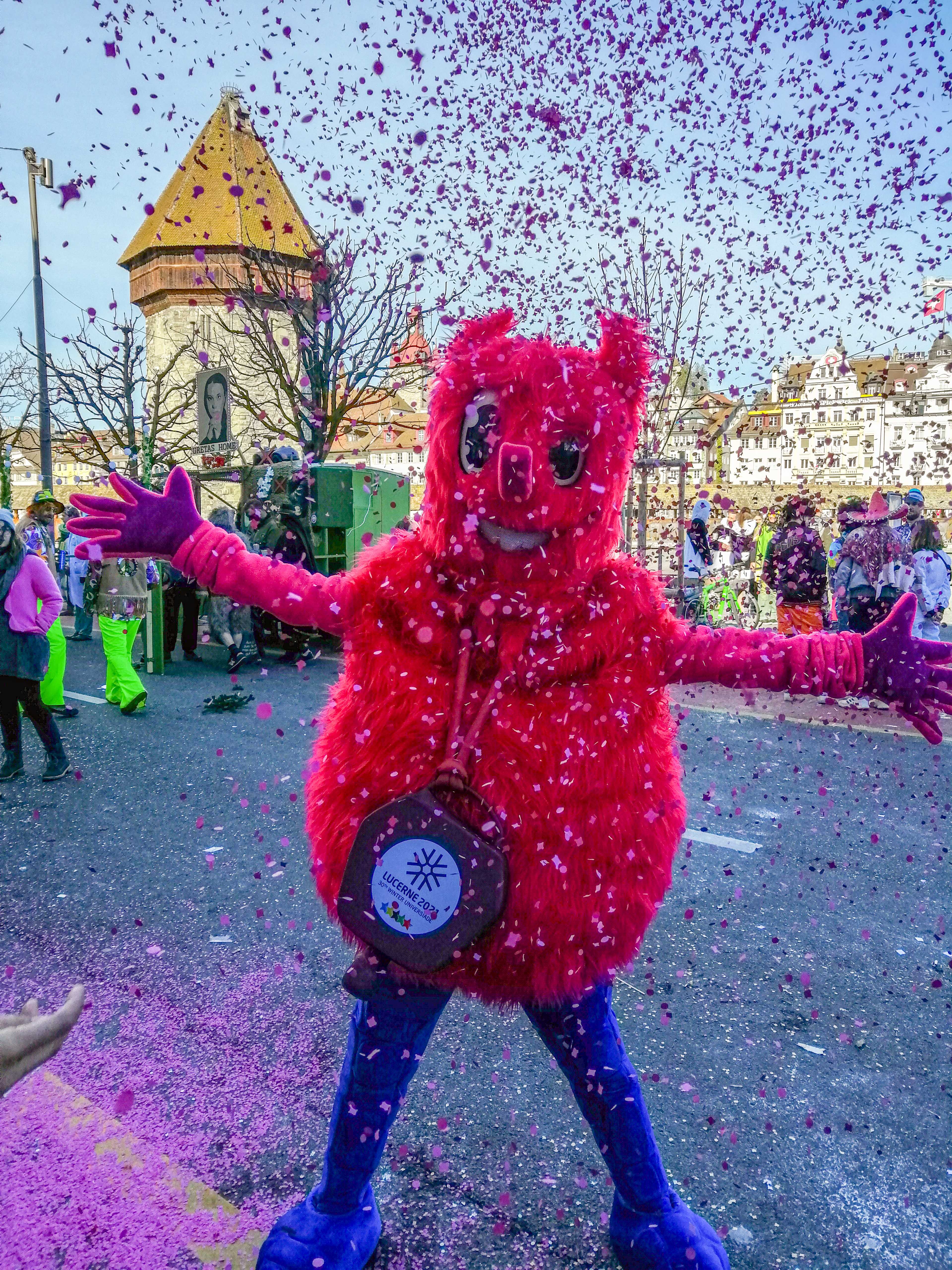 엠블럼은 페터 J. 바르디스(Peter J. Wardis)가 디자인했으며, 눈송이 모양을 이루도록 배치된 6개의 겹쳐진 "U" 글자로 구성되었다. 6개의 U는 6개의 개최 도시를 나타내며, 엠블럼 중앙의 점은 루체른을 나타낸다.[9]6. 2. 마스코트