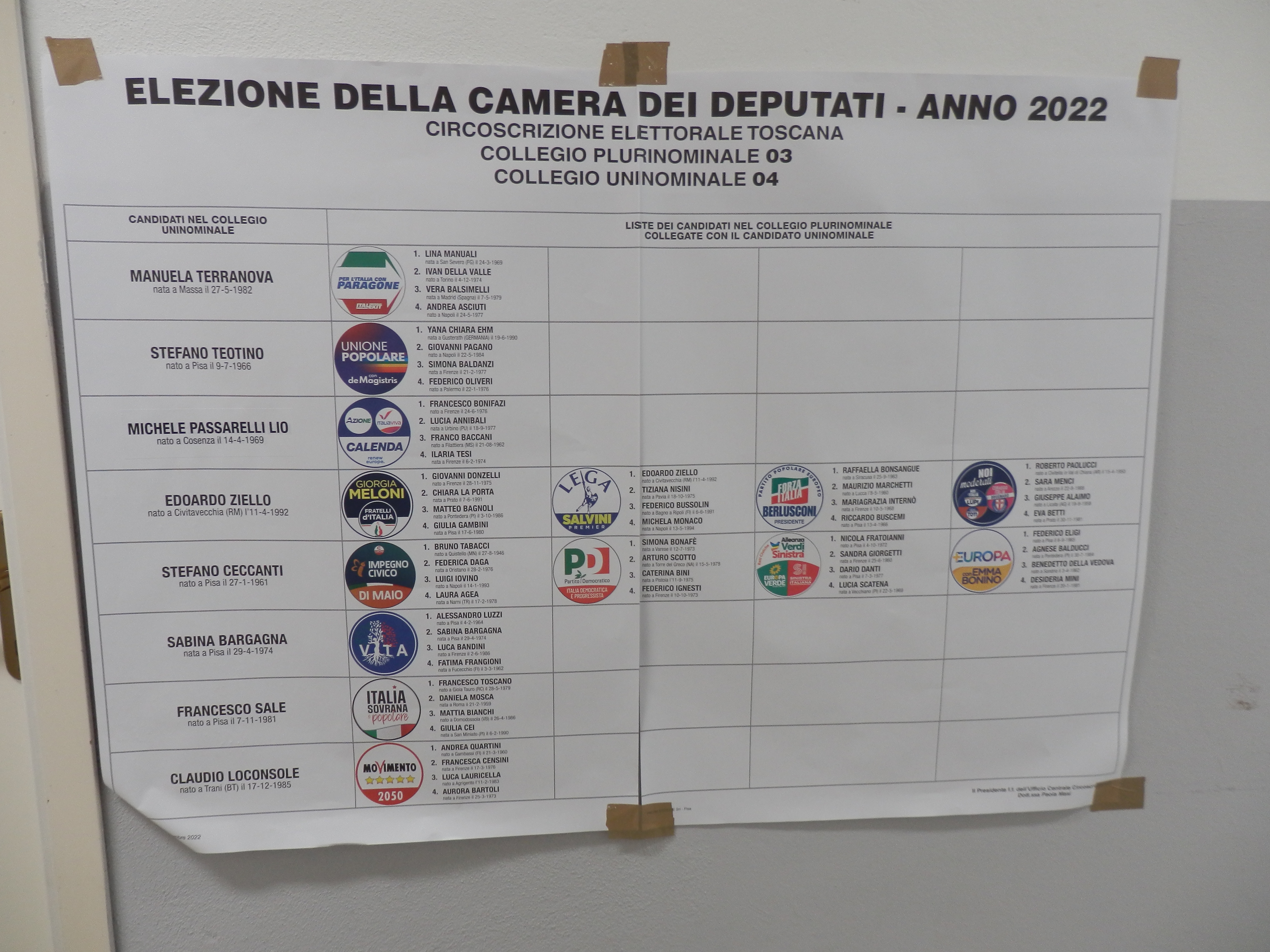이탈리아 거주 유권자는 단일 투표용지를 받으며, 여기에는 선거구 후보와 그들을 지지하는 정당 명단이 함께 표시된다. 각 소선거구에서는 최다 득표자가 당선되며, 다선거구 의석은 전국 득표율에 따라 배분된다. 소선거구 결과에 반영되려면 정당은 전국 투표에서 최소 1%를 득표하거나, 전국 투표에서 최소 10%를 득표한 연합에 속해야 한다. 다선거구 의석을 얻으려면 정당은 전국 투표에서 최소 3%를 얻어야 한다. 다선거구 당선자는 폐쇄명부제에 따라 결정된다.[192]