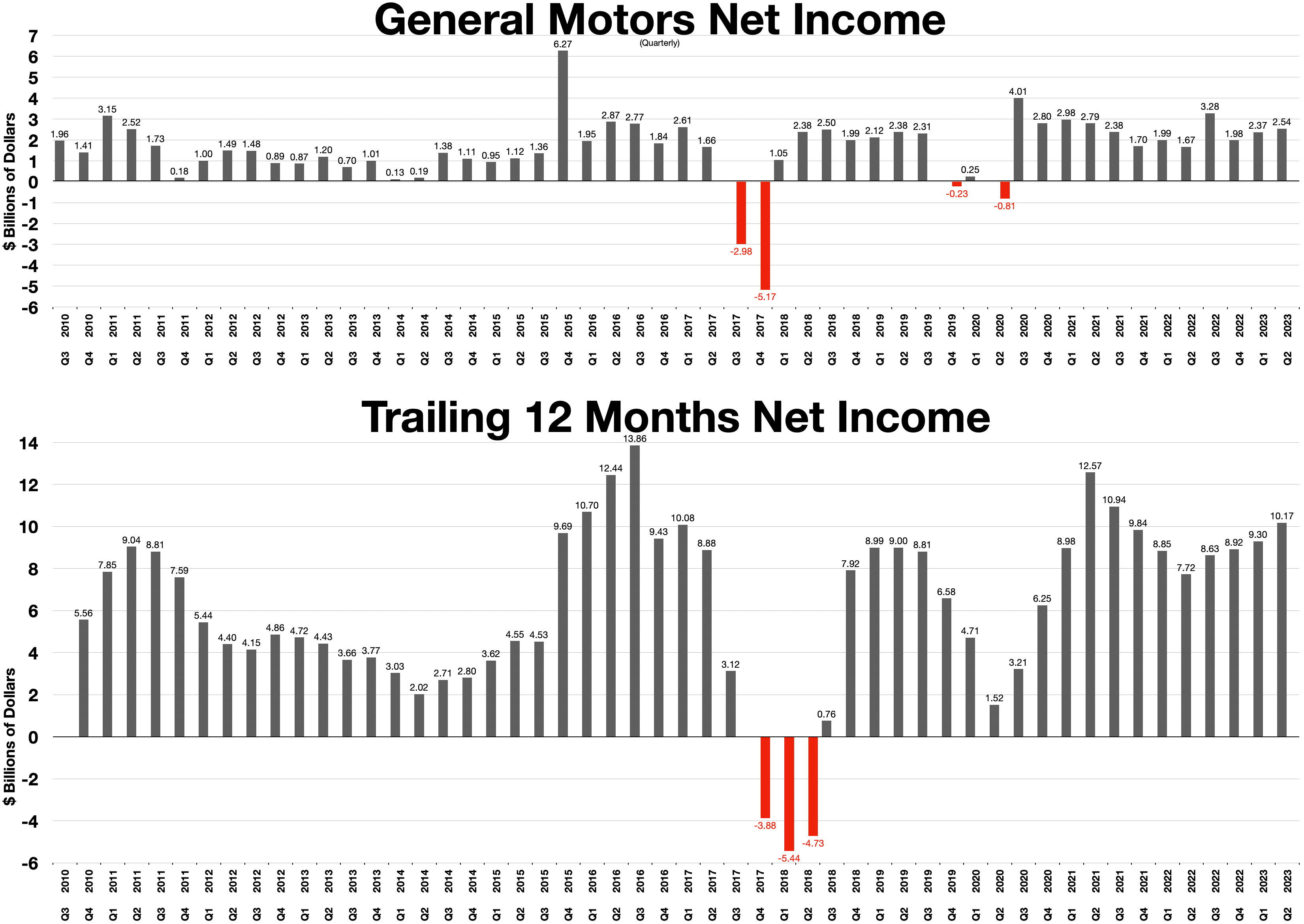 자동차 회사들은 정부 규제에 대응하고 경쟁력을 갖추기 위해 전기차 생산으로 전환해야 하며, 이를 위해 수십억 달러의 이윤을 재투자해야 한다고 주장한다. 포드는 2023년에 전기차 사업에서 45억달러의 손실을 볼 것이라고 발표했다.테슬라, 리비안, 루시드와 같이 전기차만 생산하는 회사들은 비노조 노동자들을 통해 차량을 생산한다. 전기차만 생산하는 테슬라의 노동 비용은 시간당 45달러이다. 두 번째로 큰 자동차 회사인 토요타는 시간당 55달러의 노동 비용을 지출한다. 현재 전미자동차노조(UAW)의 노동 비용은 시간당 65달러이다. 웰스 파고는 전미자동차노조가 제안한 협약이 평균 노동 비용을 시간당 136달러로 올릴 것이라고 추정한다. 포드, GM, 스텔란티스는 제시된 전미자동차노조 협상안이 그들이 전기차로 전환할 경우에 경쟁력을 갖추지 못하게 하고, 외국 자동차 회사와 경쟁하지 못하도록 할 것이라고 주장한다.