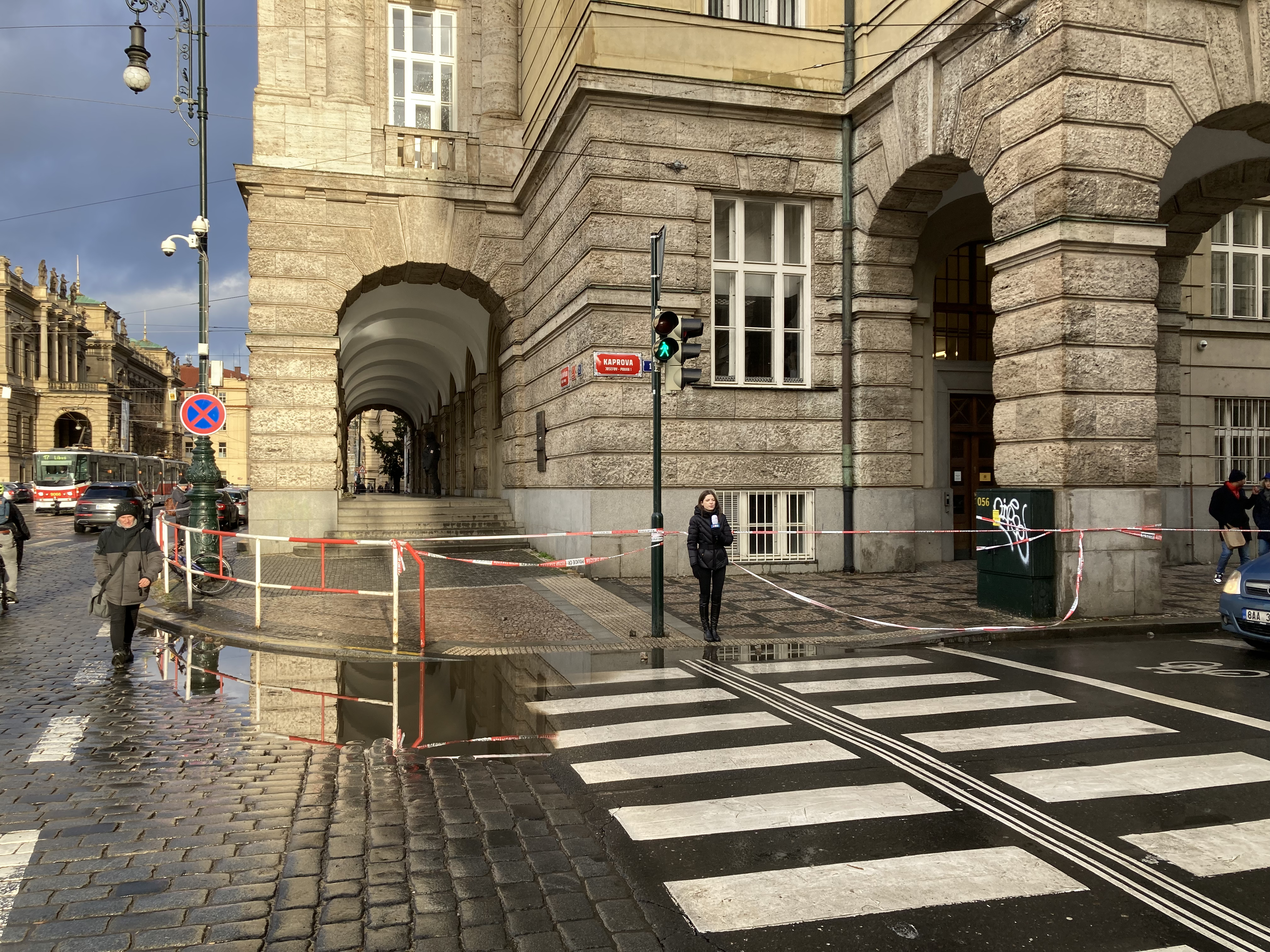 사복을 입은 일부 강력 범죄 수사관들이 첼레트나 건물에서 본관 앞 얀 팔라흐 광장의 더 넓은 지역으로 이동했다. 그들은 이미 다른 경찰 부대에 의해 수색되었다는 정보를 가지고 있었기 때문에 본관에 들어가지 않았다.[43]