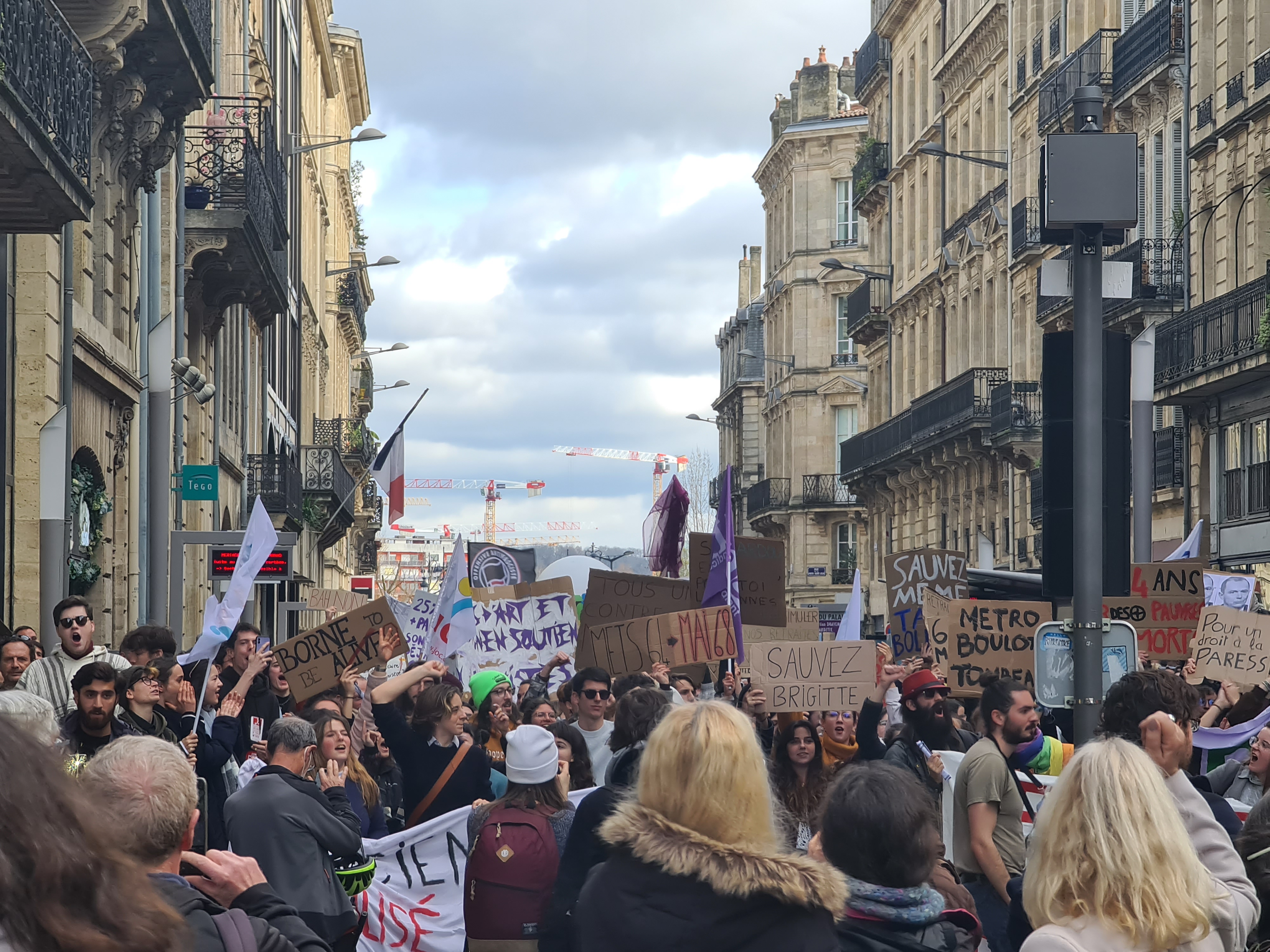 이는 생계비 위기 속에서 발생하여 정책에 대한 분노와 시위를 악화시켰다는 비판을 받았다. ''더 타임스(The Times)''는 일부 사람들이 "공공의 분위기가 높은 인플레이션으로 인해 악화된 시기에 개혁을 추진하는 것이 정치적으로 현명한지 의문을 제기"했다고 했다.[174] 5월 1일 파리, 리옹, 낭트 시위의 선두에는 블랙 블록 단체가 있었으며,[25] 파리에는 2,000명에서 3,000명 사이,[26] 리옹에는 1,000명(론 주(Rhône prefecture)는 2,000명 중 "위험 인물"로 분류)[27], 낭트에도 많은 수가 있었다.[25] 4월 15일, 렌 시내에서 열린 허가받지 않은 시위에는 1,000명 이상이 모였고, 두 남자가 금 판매점으로부터 25000EUR 상당의 금괴와 금화를 훔쳐 달아났다.[28]