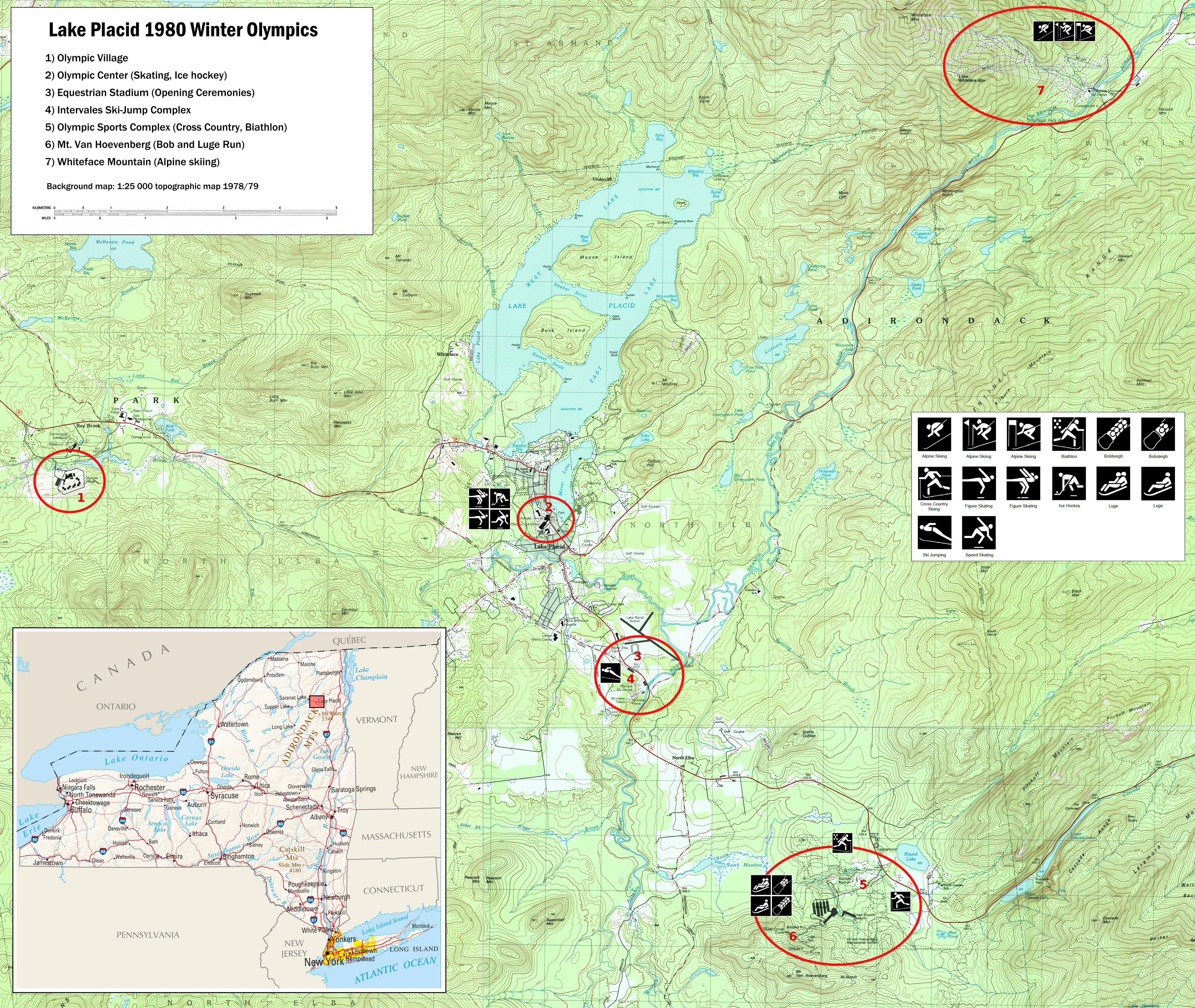 경기는 주로 레이크플래시드에서 열렸으며, 이외에도 새러내크 레이크, 포츠담, 캔톤, 노스 크릭 등지에서도 진행되었다.