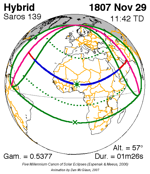 [96] 웹사이트 Ten Millennium Catalog of Long Solar Eclipses, −3999 to +6000 (4000 BCE to 6000 CE) http://eclipse.gsfc.[...]
