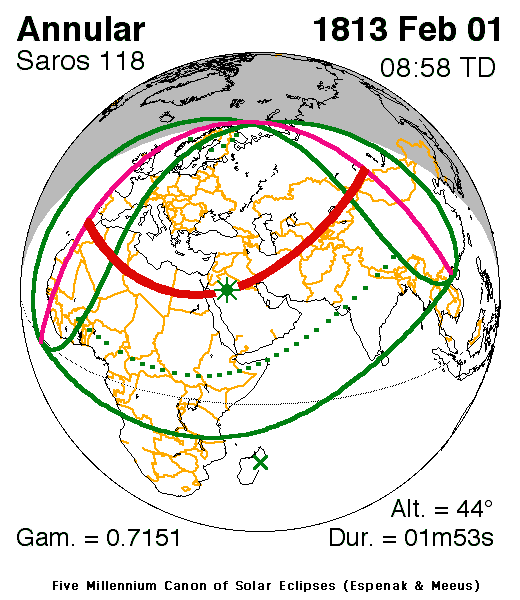1826년 10월 31일 (사로스 111) | 1913년 8월 31일 (사로스 114) | 1942년 8월 12일 (사로스 115) | 1971년 7월 22일 (사로스 116) | ||