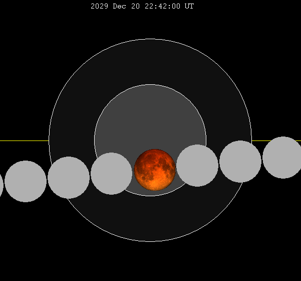 2029년 7월 11일에 발생하는 개기 일식은 남아메리카와 남극에서 관측 가능하며, 달의 그림자가 지구에 닿았다가 떠나는 시간과 여러 주기들과 관련되어 있다. - 2029년 과학 - 2029년 1월 14일 일식