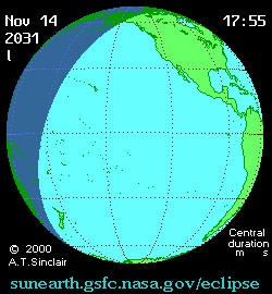 최대 일식 | 2031년 11월 14일 21:07:30.7 UTC |