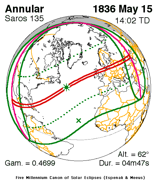 ![]() 1807년 6월 6일 (사로스 134) | ![]() 1836년 5월 15일 (사로스 135) | ![]() 1865년 4월 25일 (사로스 136) |