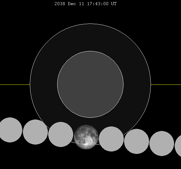 2038년 12월에는 12월 11일 반그림자 월식 (보름달)과 12월 26일 개기 일식 (그믐달)이 발생한다.