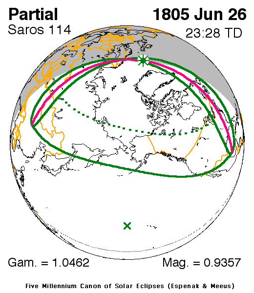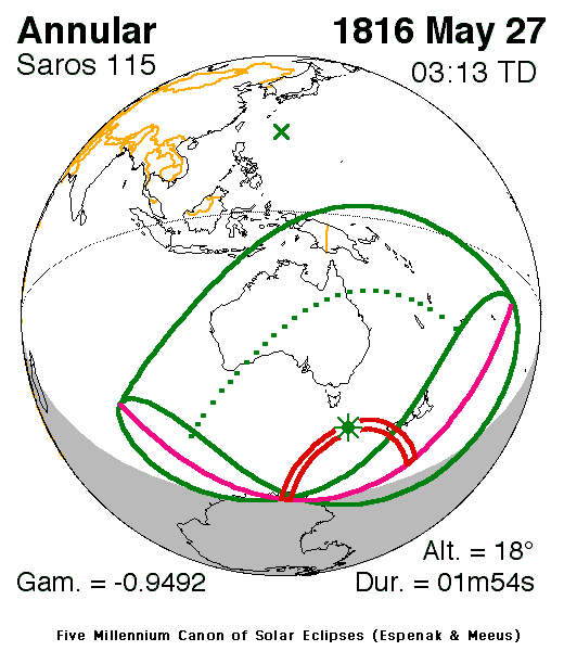 ![]() 1805년 6월 26일 (사로스 114) | ![]() 1816년 5월 27일 (사로스 115) | ![]() 1827년 4월 26일 (사로스 116) | ![]() 1838년 3월 25일 (사로스 117) | ![]() 1849년 2월 23일 (사로스 118) |