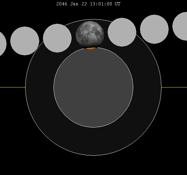 2046년 1월-2월 일식 시즌에는 1월 22일 부분 월식과 2월 5일 금환 일식이 발생한다.