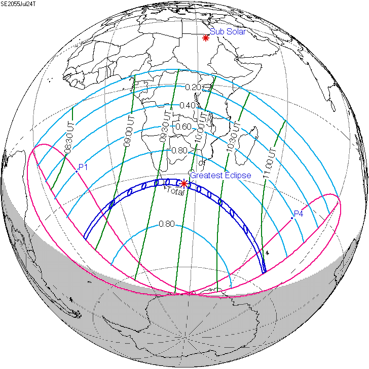 다음 표는 2055년 7월 24일 일식과 관련된 여러 매개변수를 보여준다.[3]