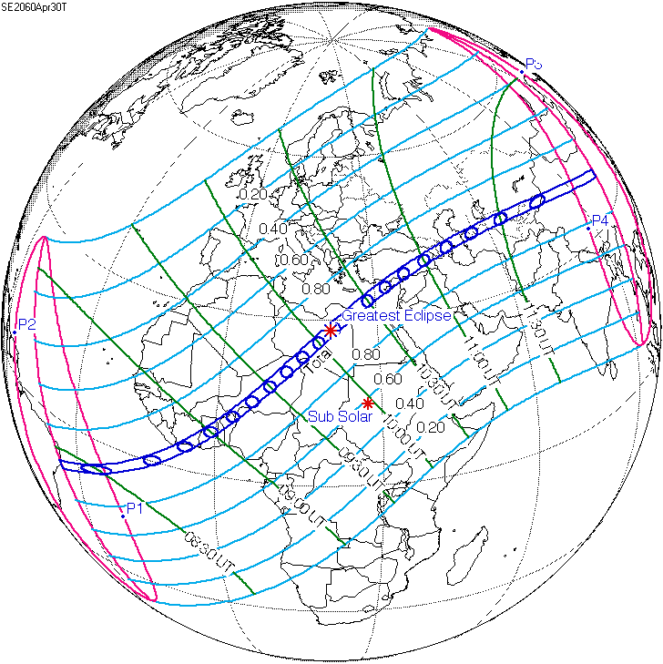 2060년 4월 30일 일식은 달의 반그림자 또는 본영이 지구 표면을 통과하면서 발생하는 현상이다. 이 일식의 시간 및 기타 상세 매개변수에 대한 정보는 하위 섹션의 표를 참고하면 된다.[3]