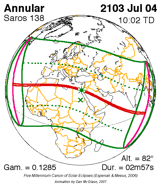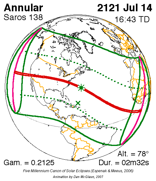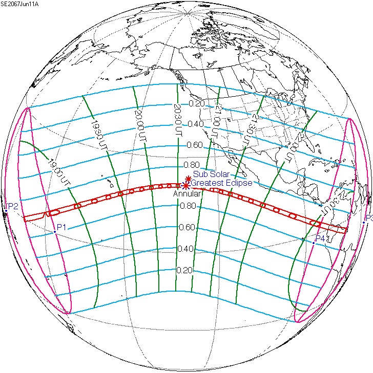 2067년 6월 11일 금환일식은 여러 일식 주기와 관련되어 있다.