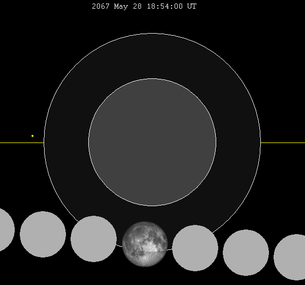 2067년 6월 11일 금환일식의 상세 정보는 다음과 같다. 여기에는 달의 반그림자나 본그림자가 특정 변수에 도달하는 시간, 그리고 이와 관련된 여러 변수들이 포함된다.[3]