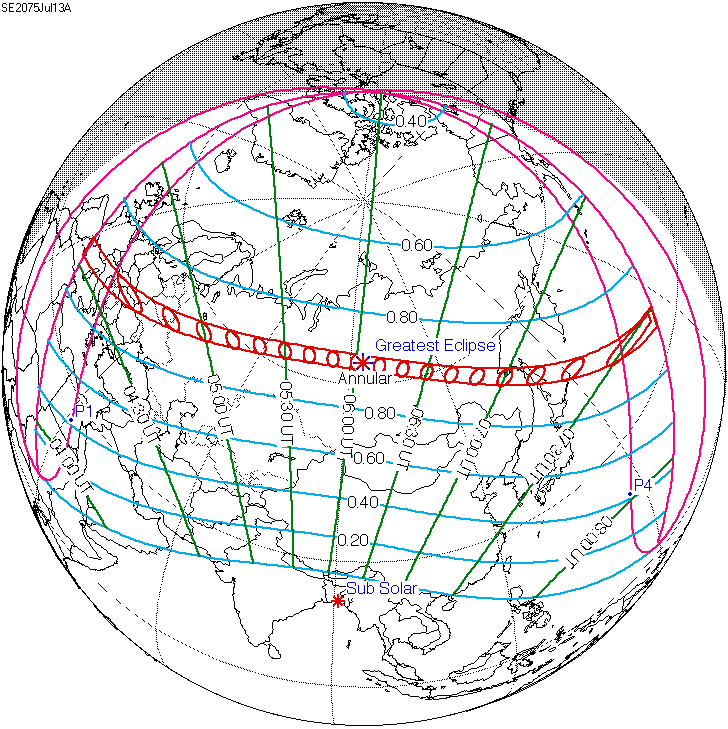 2075년 7월 13일에 금환일식이 일어난다.[3]