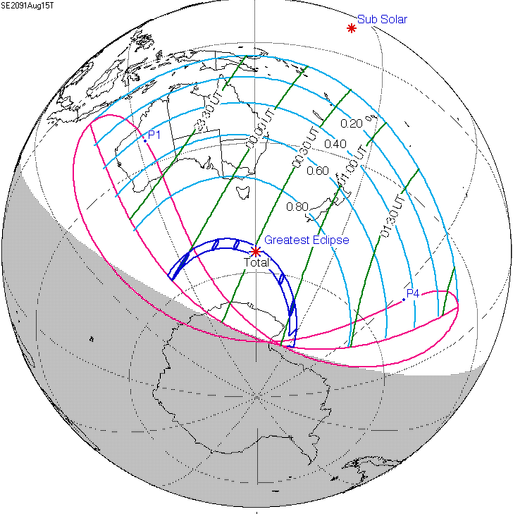 2091년 8월 15일에 개기일식이 발생한다. 이 일식에 대한 상세 정보는 아래 표와 같다.
