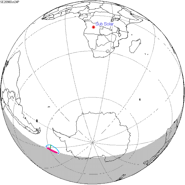 2024년 10월 2일 일식은 금환 일식으로, 태양 사로스 144 주기에 속하며 이스터 섬, 아이센주, 산타크루스 주 등에서 금환 일식으로, 더 넓은 지역에서 부분 일식으로 관측 가능한 2024년 일식 시즌의 일부이다. - 부분일식 - 1953년 2월 14일 일식