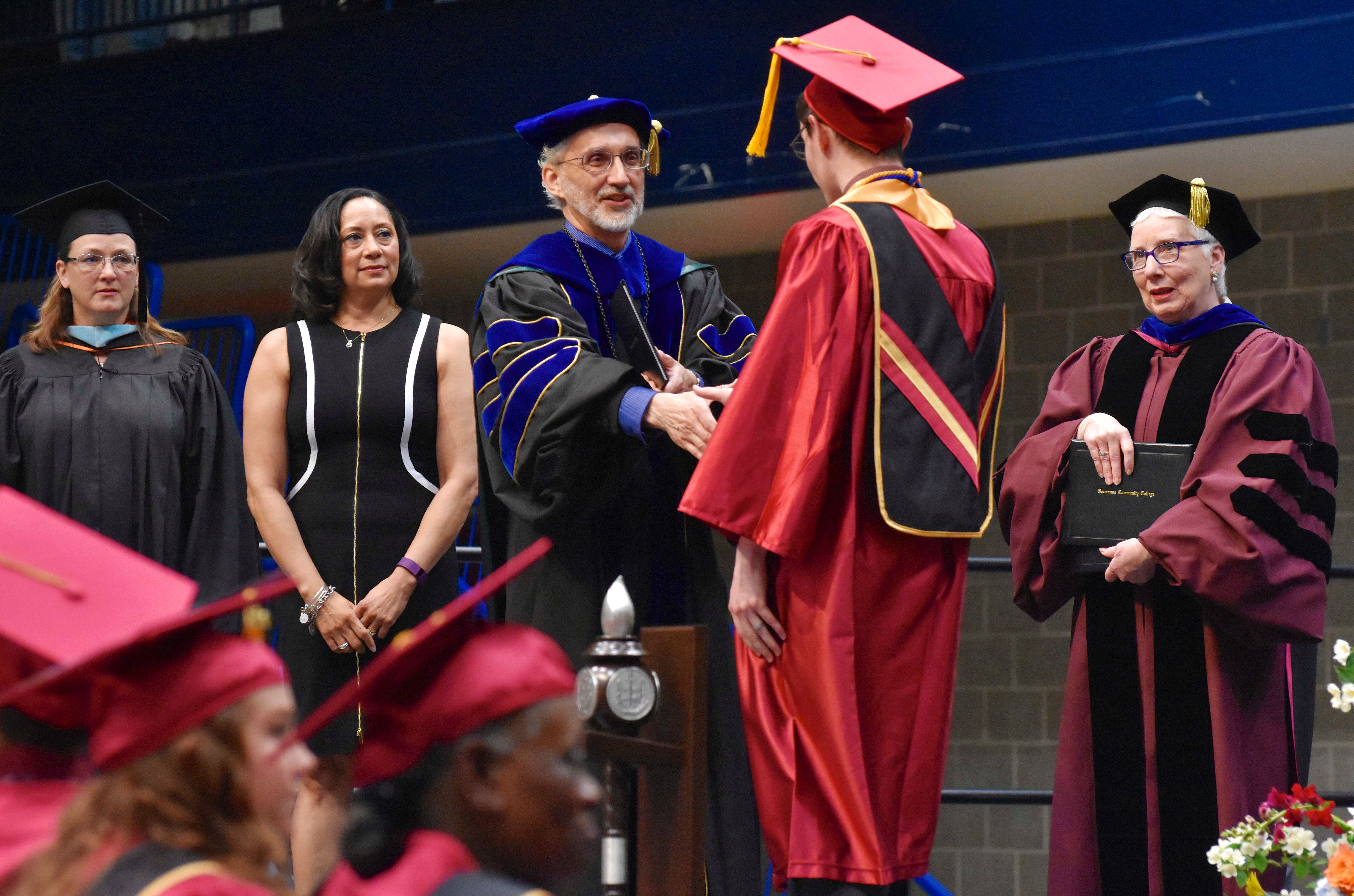 Germanna Community College에서 졸업식에서 졸업장을 받는 고등 교육 졸업생.