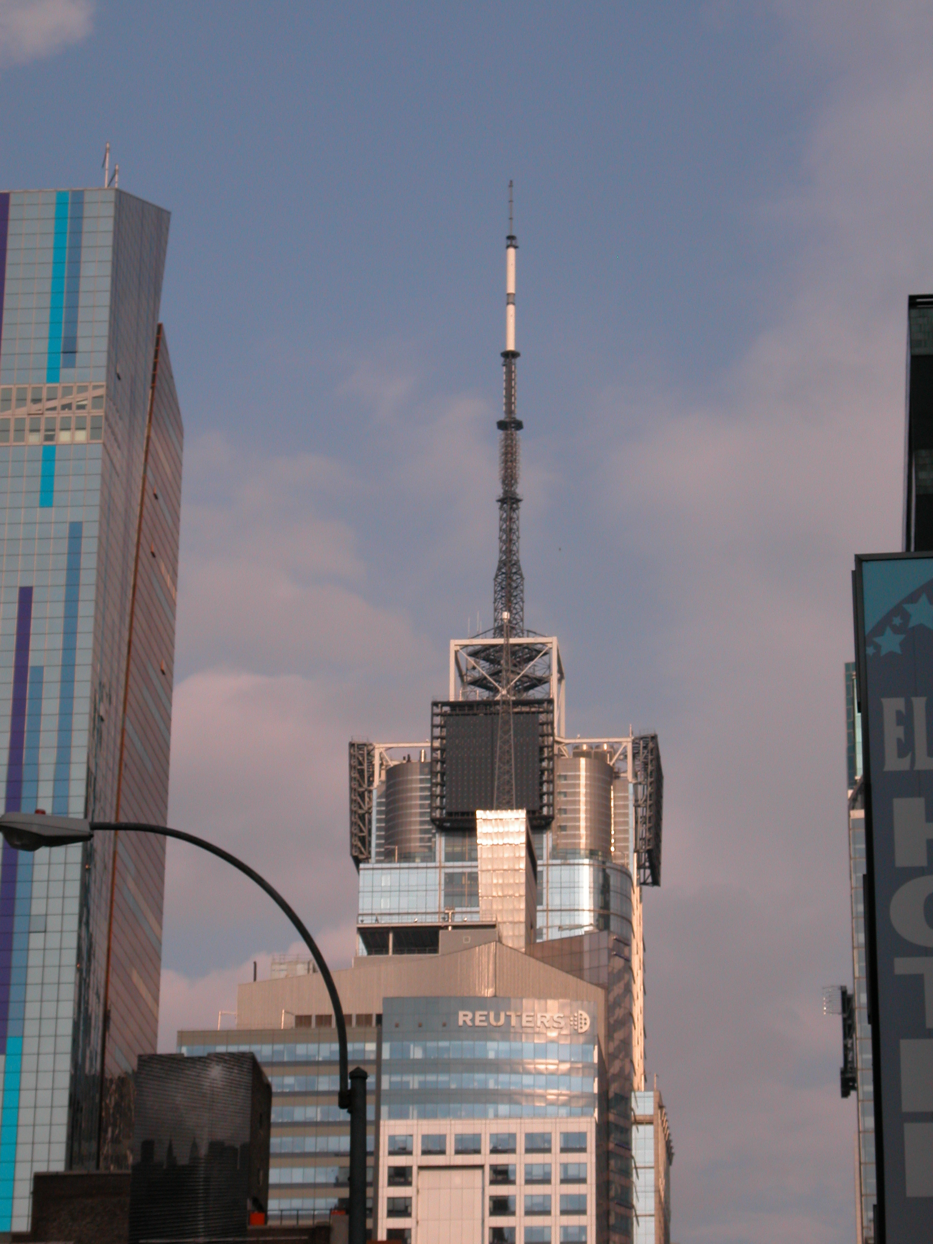 건물 꼭대기에는 안테나 마스트가 있다. 원래 안테나 마스트는 주로 아이하트미디어의 백업 송신기 사이트로 건설되었다.[29] 2001년 9.11 테러로 세계 무역 센터의 방송 장비가 붕괴된 후, WKTU, WNYC-FM, WPAT-FM 라디오 방송국의 주 송신기와 WSKQ-FM의 백업 송신기가 4 타임스 스퀘어로 이전되었다.[15]