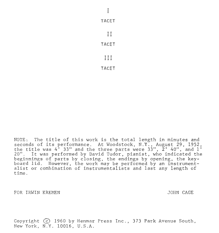 The Original: John Cage, “4'33” (In Proportional Notation)” (1952/1953)