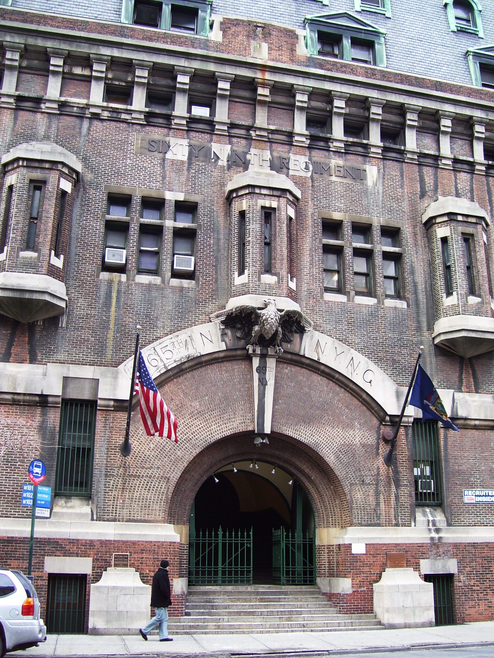 미국 남북 전쟁 이후, 뉴욕 주 정부는 각 카운티에 자원 연대를 위한 무기고 건설을 의무화했다.[26] 1884년 뉴욕시 무기고 위원회 설립 전, 맨해튼에는 어퍼 이스트 사이드의 제7연대 무기고만 있었다.[26][29][30][31] 따라서 대부분의 자원 연대는 공공 시장이나 임대 건물 로프트 등에서 훈련했다.[26]