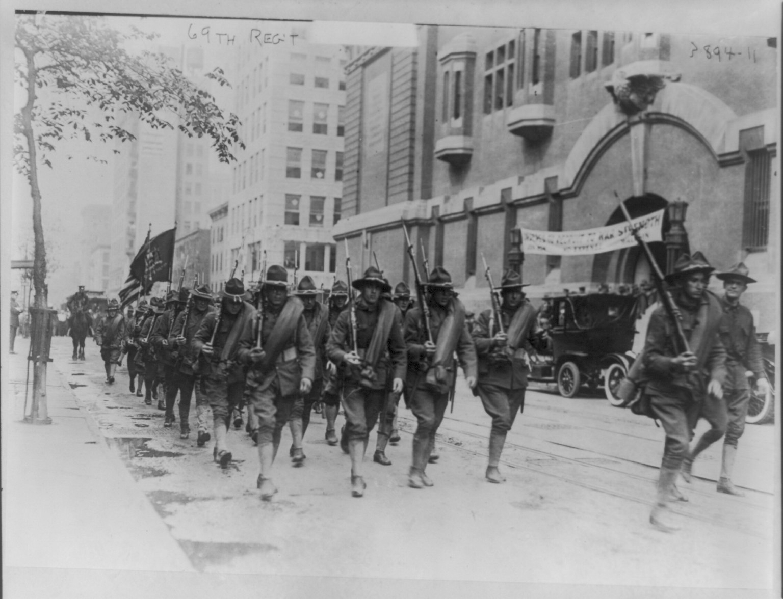 69 연대 아머리는 아일랜드계 미국인 수집가 존 퀸의 노력으로 1913년 국제 현대 미술 전시회, 일명 아모리 쇼를 개최했다.[88][130][5] 1913년 2월 17일부터 3월 17일까지 열린 아모리 쇼에는 회화, 조각, 장식 작품 등 약 1,300여 점의 작품이 전시되었다.[127][131] 출품 작가 중 3분의 2는 미국인이었지만, 빈센트 반 고흐, 파블로 피카소, 앙리 마티스, 라울 뒤피, 마르셀 뒤샹, 앙드레 뒤노이에 드 세곤작 등 유럽 작가들의 작품도 전시되었다.[133] 10만 명 이상이 전시회를 관람하면서 뉴욕시는 주요 미술 중심지로 떠올랐다.[127][133] NPR에 따르면, 이 전시회는 "미국 모더니즘의 새벽을 알린" 행사였으며, 미술계에서 ''아방가르드''라는 용어가 처음 사용된 계기였다고 한다.[132]